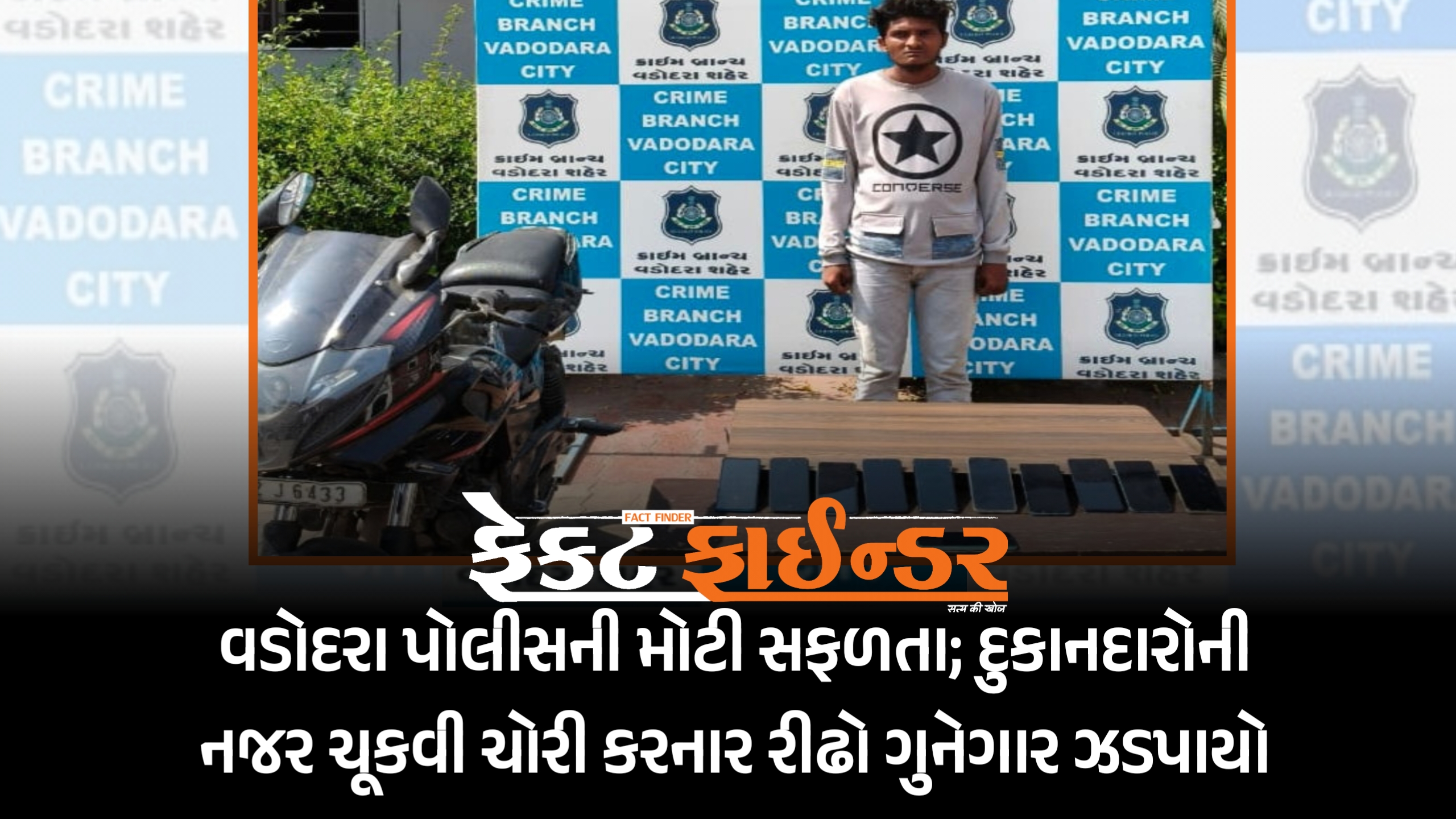 વડોદરા પોલીસની મોટી સફળતા; દુકાનદારોની નજર ચૂકવી ચોરી કરનાર રીઢો ગુનેગાર ઝડપાયો