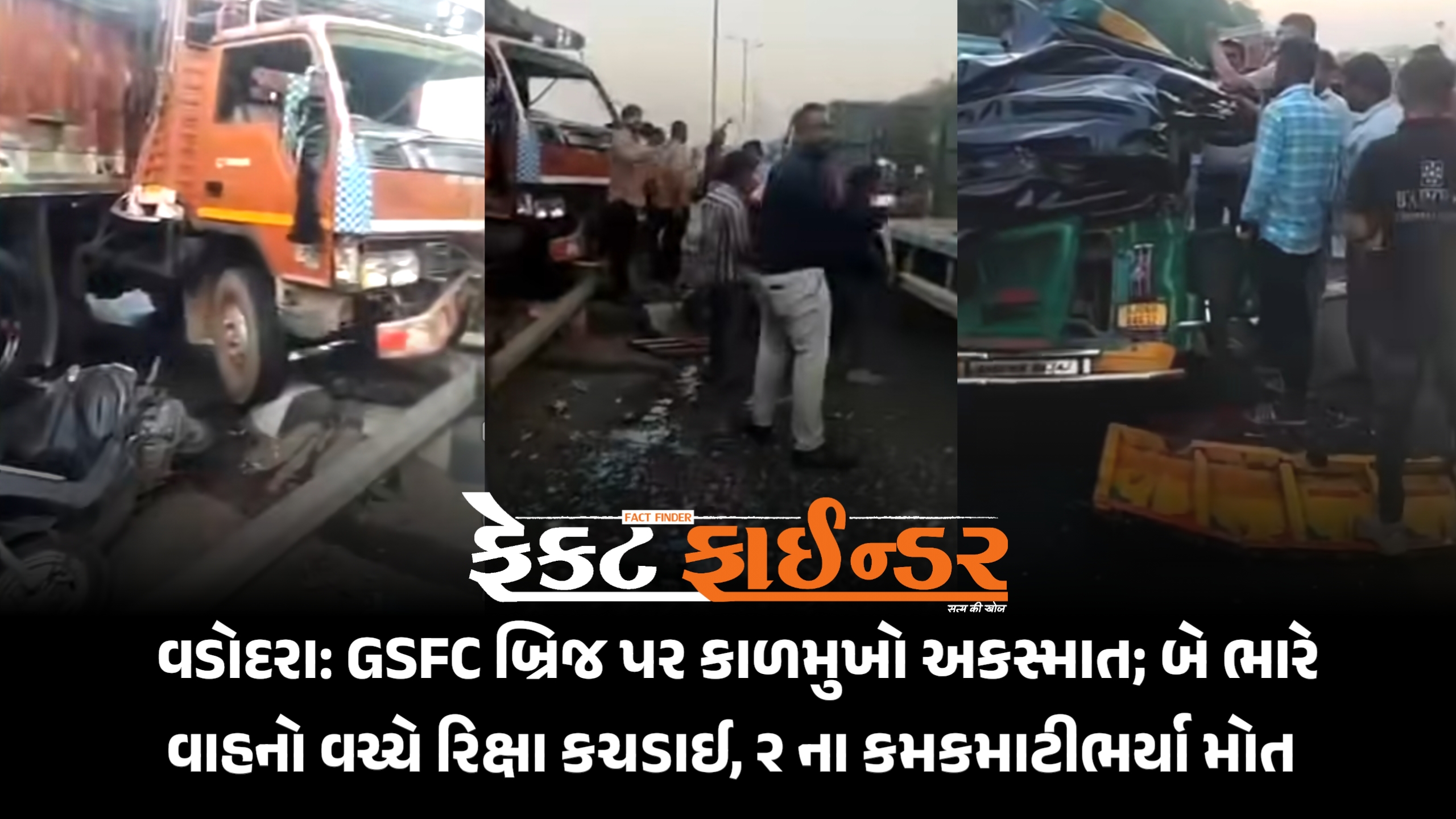 વડોદરા: GSFC બ્રિજ પર કાળમુખો અકસ્માત; બે ભારે વાહનો વચ્ચે રિક્ષા કચડાઈ, ૨ ના કમકમાટીભર્યા મોત – ૩ ની હાલત ગંભીર