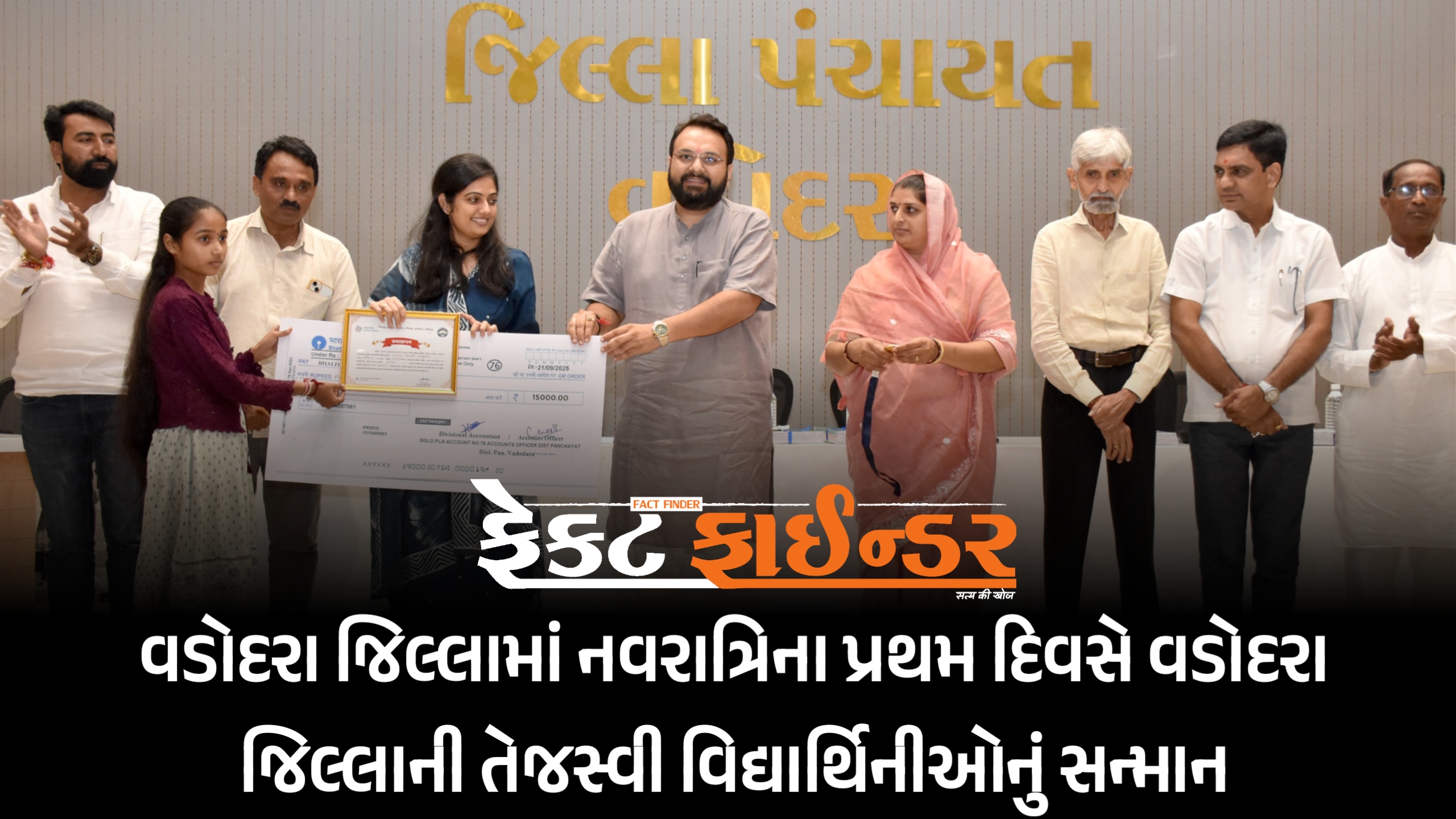 વડોદરા જિલ્લામાં નવરાત્રિના પ્રથમ દિવસે વડોદરા જિલ્લાની તેજસ્વી વિદ્યાર્થિનીઓનું સન્માન