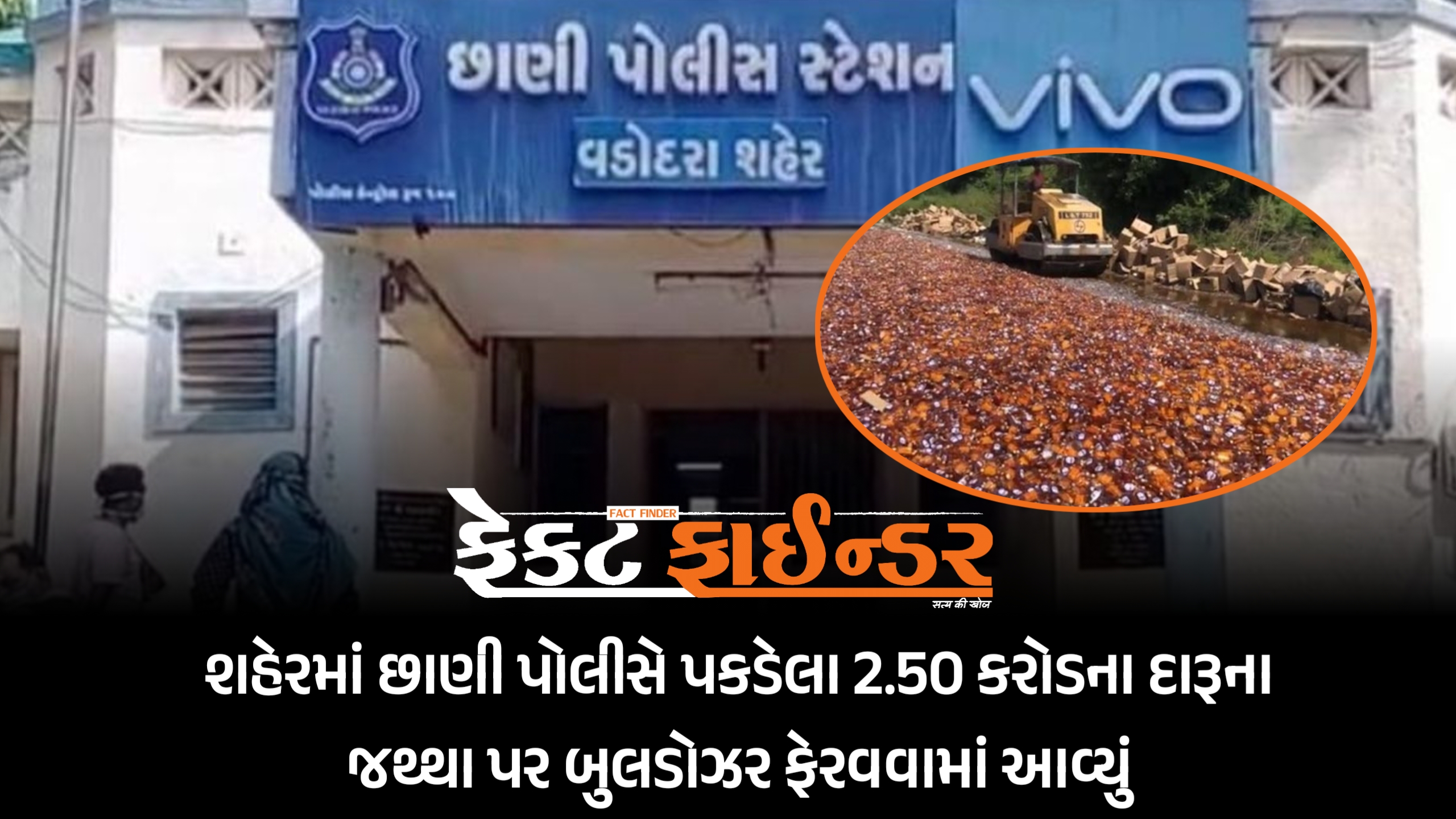 શહેરમાં છાણી પોલીસે પકડેલા 2.50 કરોડના દારૂના જથ્થા પર બુલડોઝર ફેરવવામાં આવ્યું