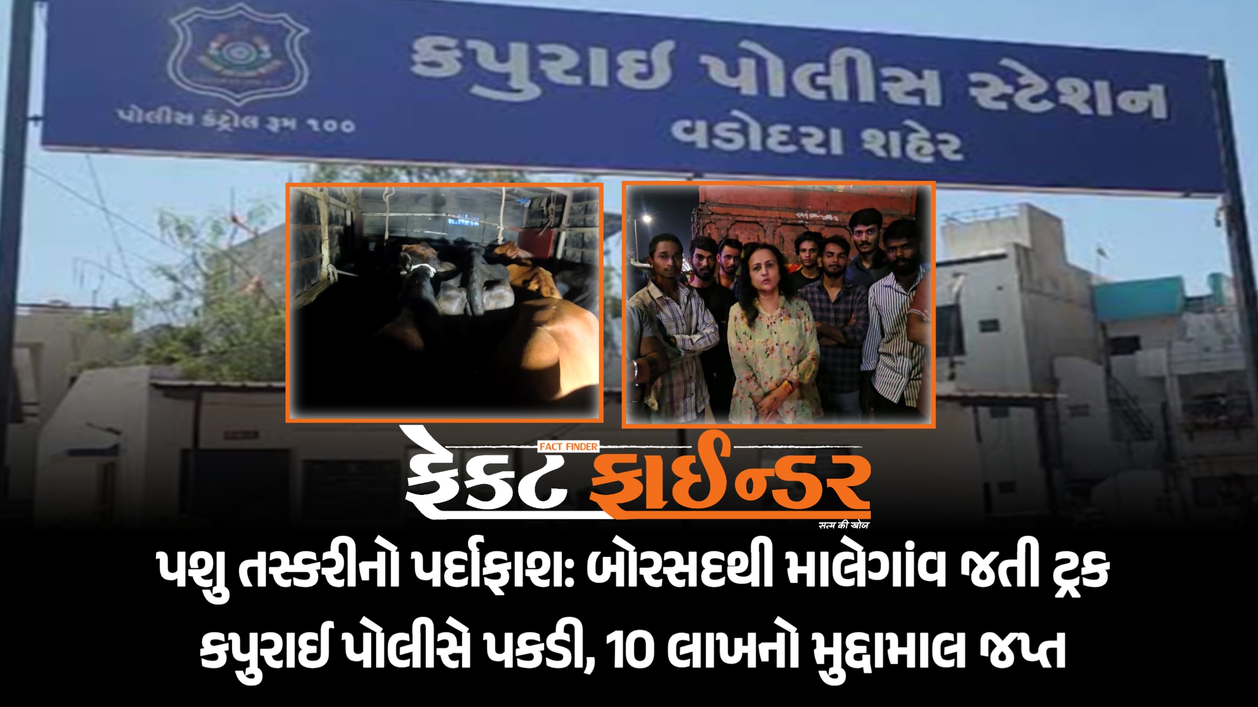 પશુ તસ્કરીનો પર્દાફાશ: બોરસદથી માલેગાંવ જતી ટ્રક કપુરાઈ પોલીસે પકડી, 10 લાખનો મુદ્દામાલ જપ્ત
