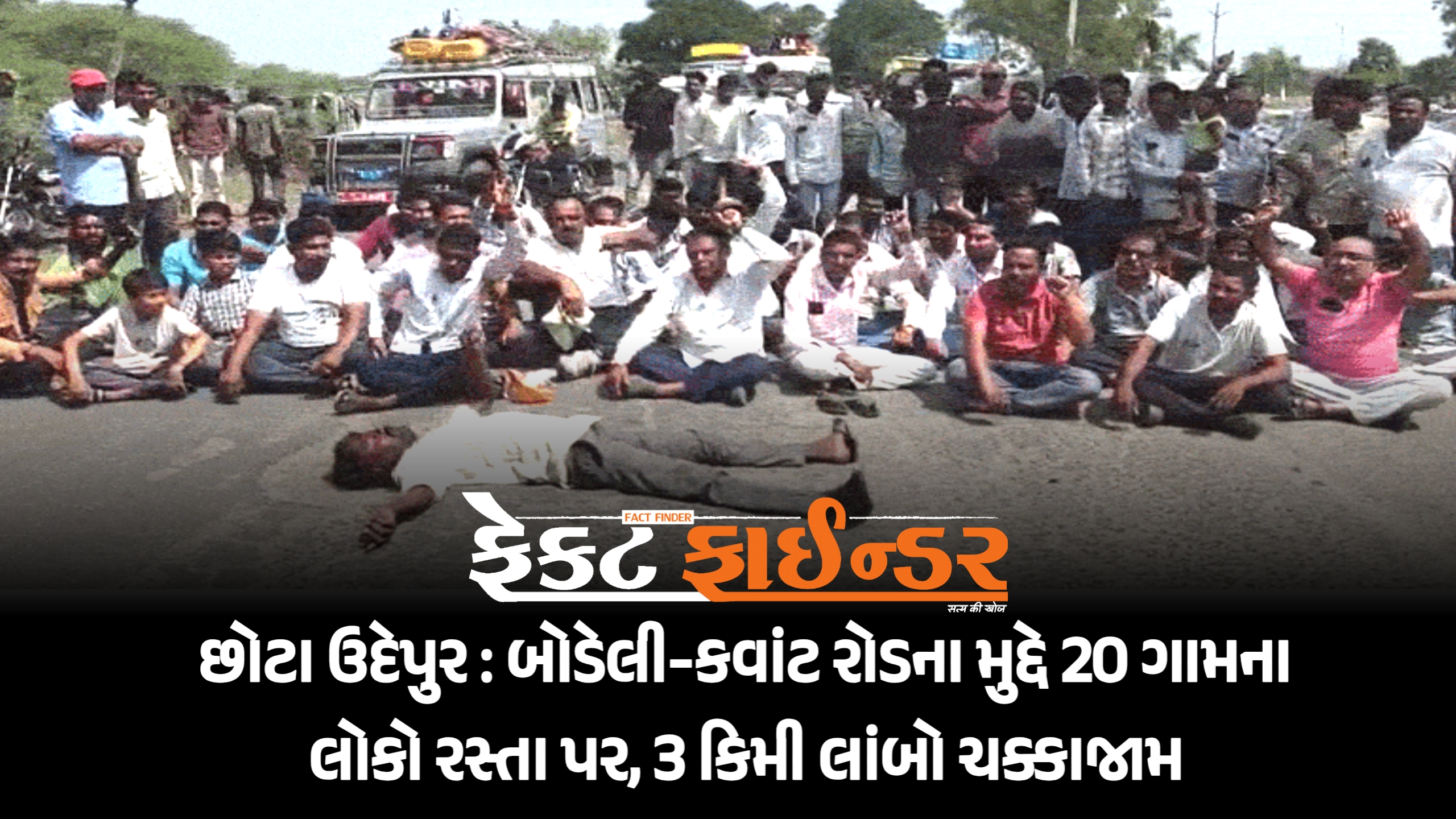 છોટા ઉદેપુર : બોડેલી-કવાંટ રોડના મુદ્દે 20 ગામના લોકો રસ્તા પર, 3 કિમી લાંબો ચક્કાજામ
