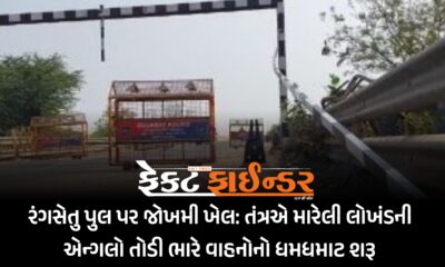 રંગસેતુ પુલ પર જોખમી ખેલ: તંત્રએ મારેલી લોખંડની એન્ગલો તોડી ભારે વાહનોનો ધમધમાટ શરૂ