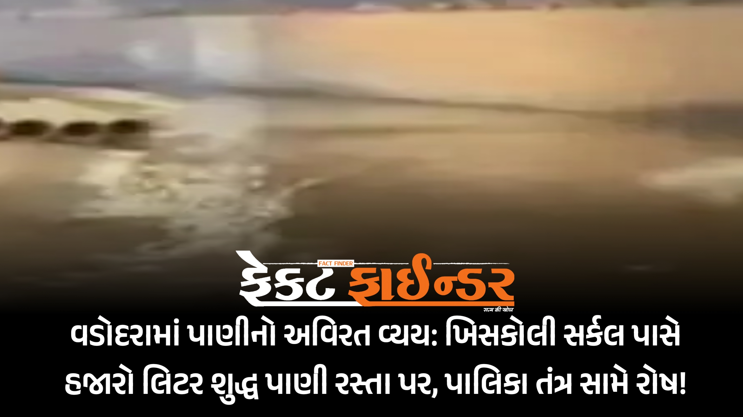 🚱 વડોદરા શહેરના પશ્ચિમ વિસ્તારમાં પીવાના પાણીનો અવિરત વ્યય થતો હોવાની મહાનગરપાલિકા (VMC) તંત્રની ગંભીર બેદરકારી સામે આવી છે. શહેરના ખિસકોલી સર્કલ નજીક છેલ્લા અનેક દિવસોથી મુખ્ય પાણીની લાઈનમાં ખામી સર્જાવાના કારણે હજારો લિટર શુદ્ધ પીવાનું પાણી રસ્તાઓ પર વહી રહ્યું છે. આ ગંભીર બેદરકારીને કારણે સ્થાનિકોમાં પાલિકા તંત્ર સામે ભારે રોષ અને આક્રોશ ફેલાયો છે.