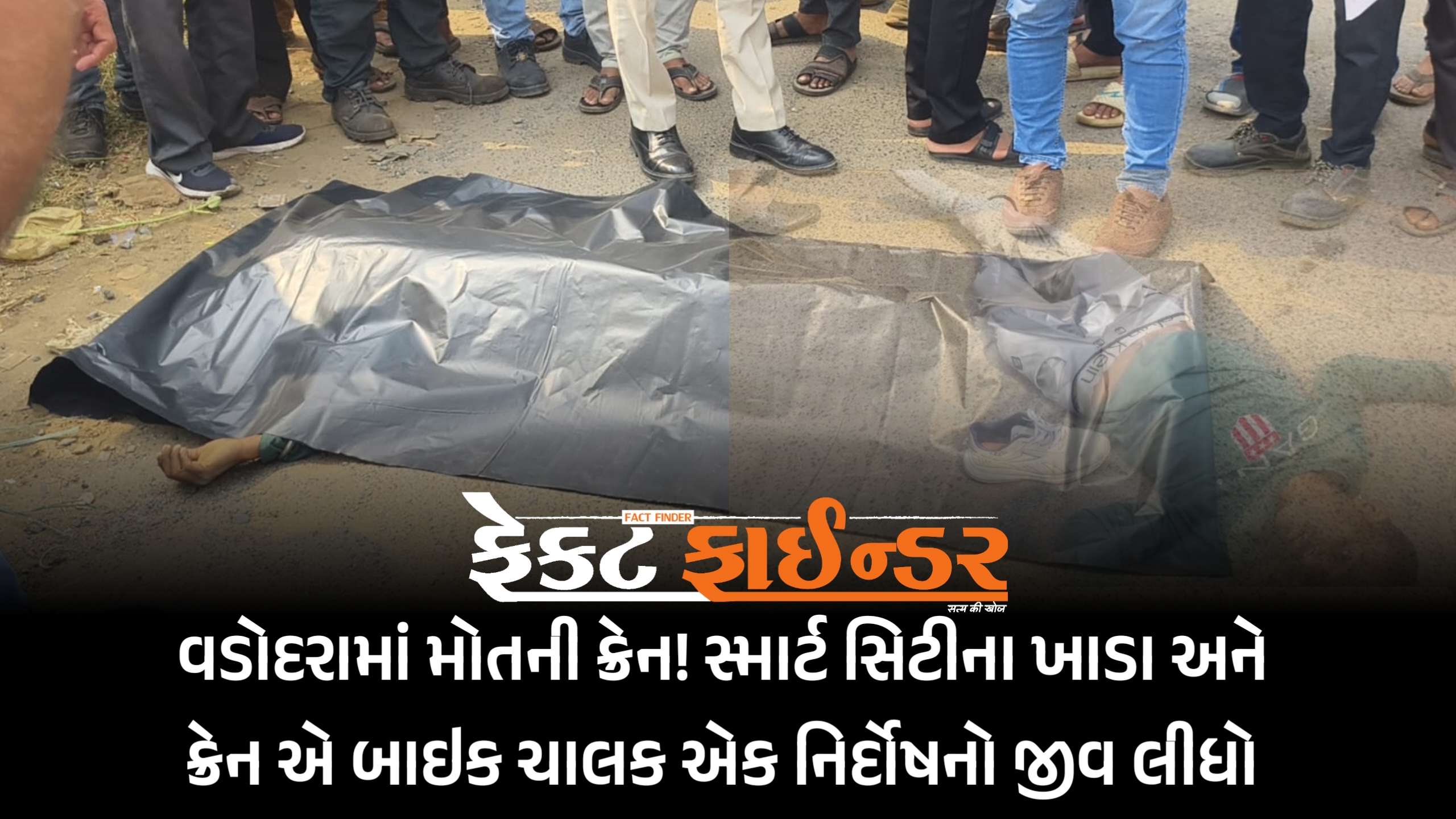 વડોદરામાં મોતની ક્રેન! સ્માર્ટ સિટીના ખાડા અને ક્રેન એ બાઇક ચાલક એક નિર્દોષનો જીવ લીધો