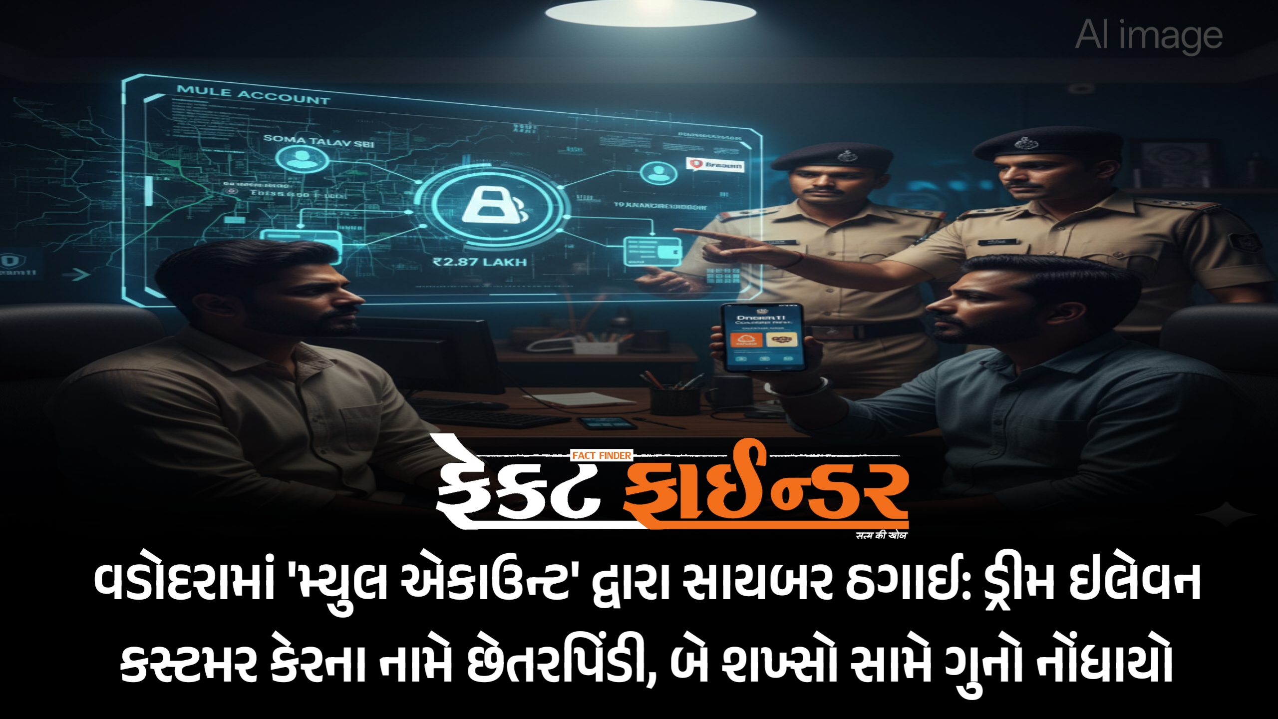 વડોદરામાં ‘મ્યુલ એકાઉન્ટ’ દ્વારા સાયબર ઠગાઈ: ડ્રીમ ઇલેવન કસ્ટમર કેરના નામે છેતરપિંડી, બે શખ્સો સામે ગુનો નોંધાયો