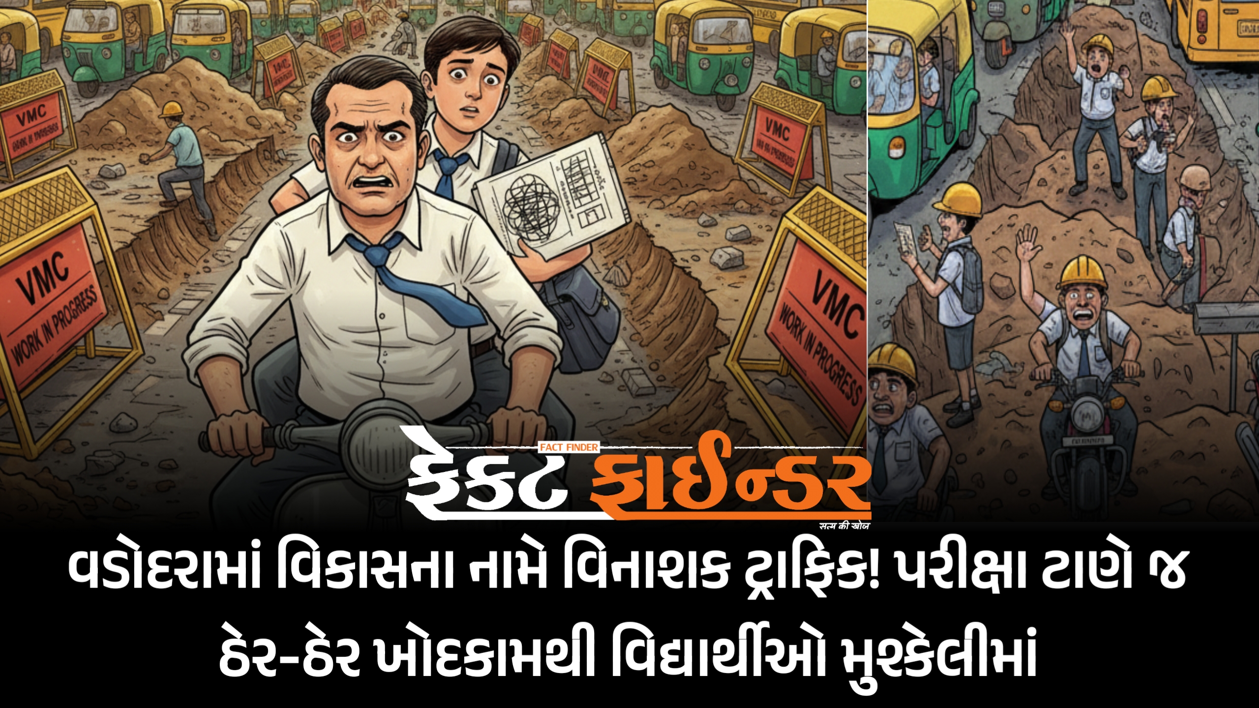 વડોદરામાં વિકાસના નામે વિનાશક ટ્રાફિક! પરીક્ષા ટાણે જ ઠેર-ઠેર ખોદકામથી વિદ્યાર્થીઓ મુશ્કેલીમાં