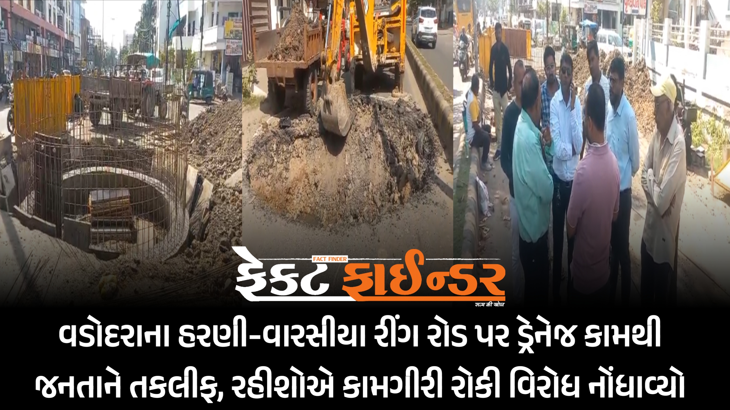 વડોદરાના હરણી-વારસીયા રીંગ રોડ પર ડ્રેનેજ કામથી જનતાને તકલીફ, રહીશોએ કામગીરી રોકી વિરોધ નોંધાવ્યો