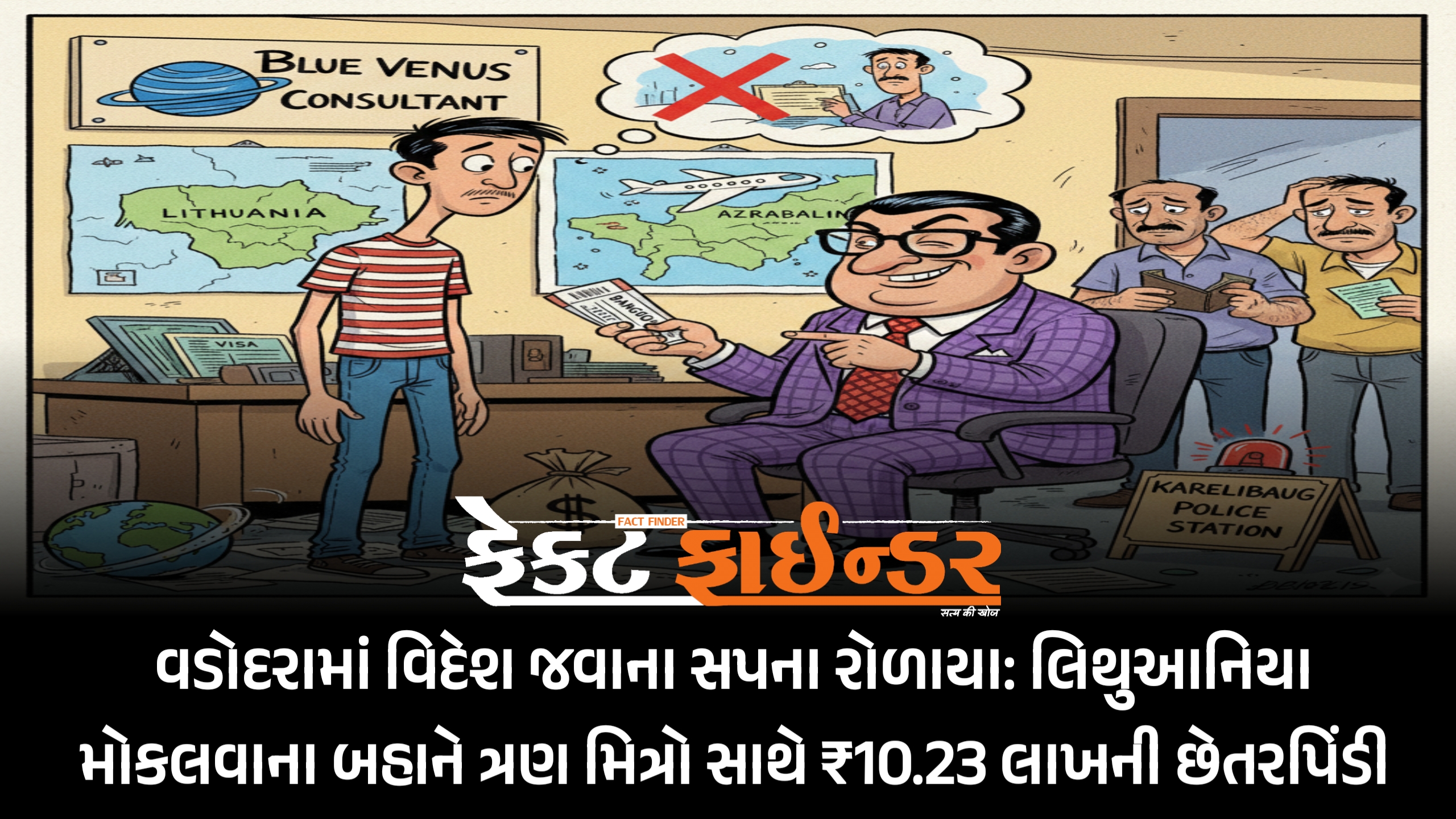 વડોદરામાં વિદેશ જવાના સપના રોળાયા: લિથુઆનિયા મોકલવાના બહાને ત્રણ મિત્રો સાથે ₹10.23 લાખની છેતરપિંડી