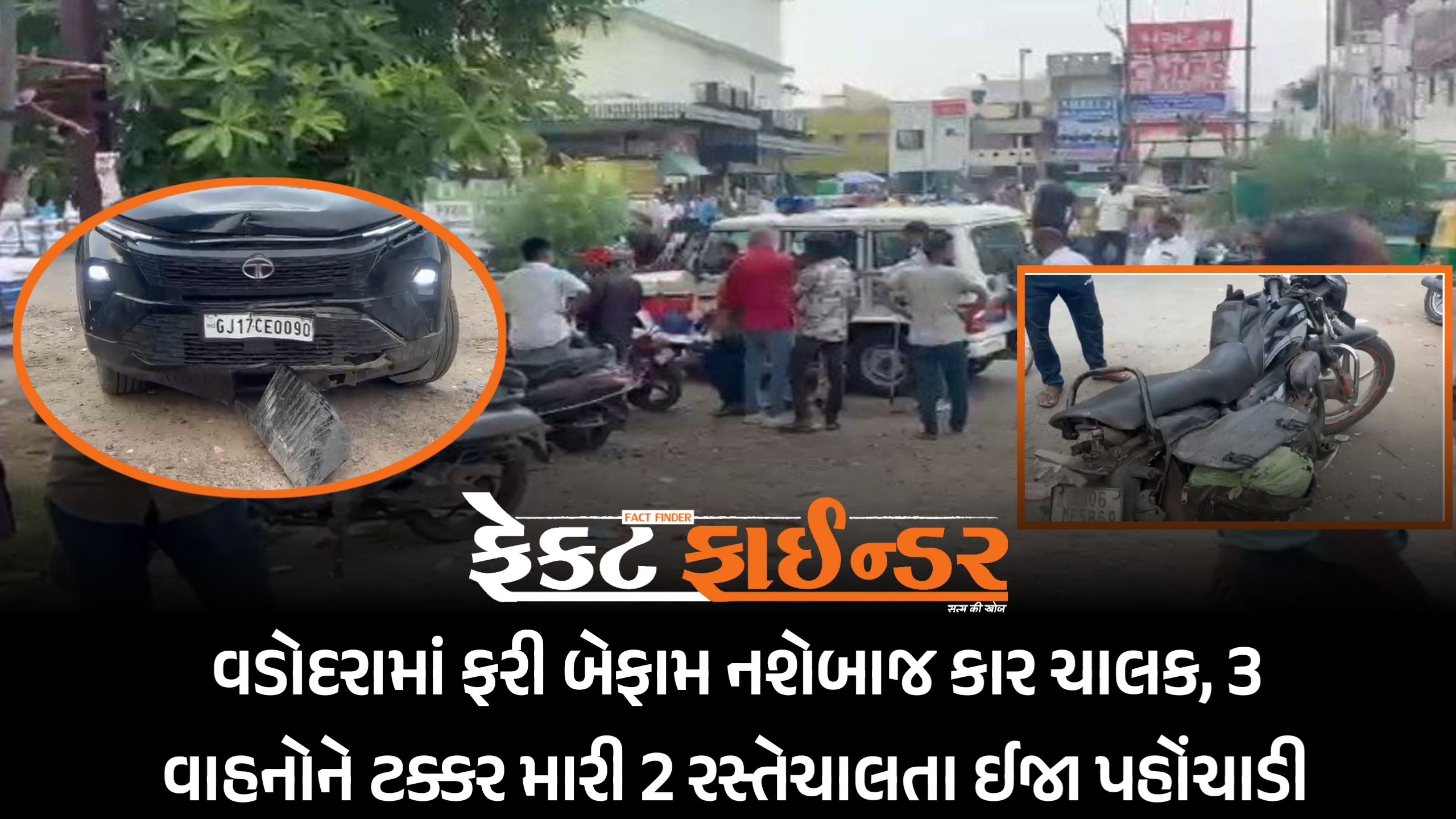 વડોદરામાં ફરી બેફામ નશેબાજ કાર ચાલક, 3 વાહનોને ટક્કર મારી 2 રસ્તેચાલતા ઈજા પહોંચાડી