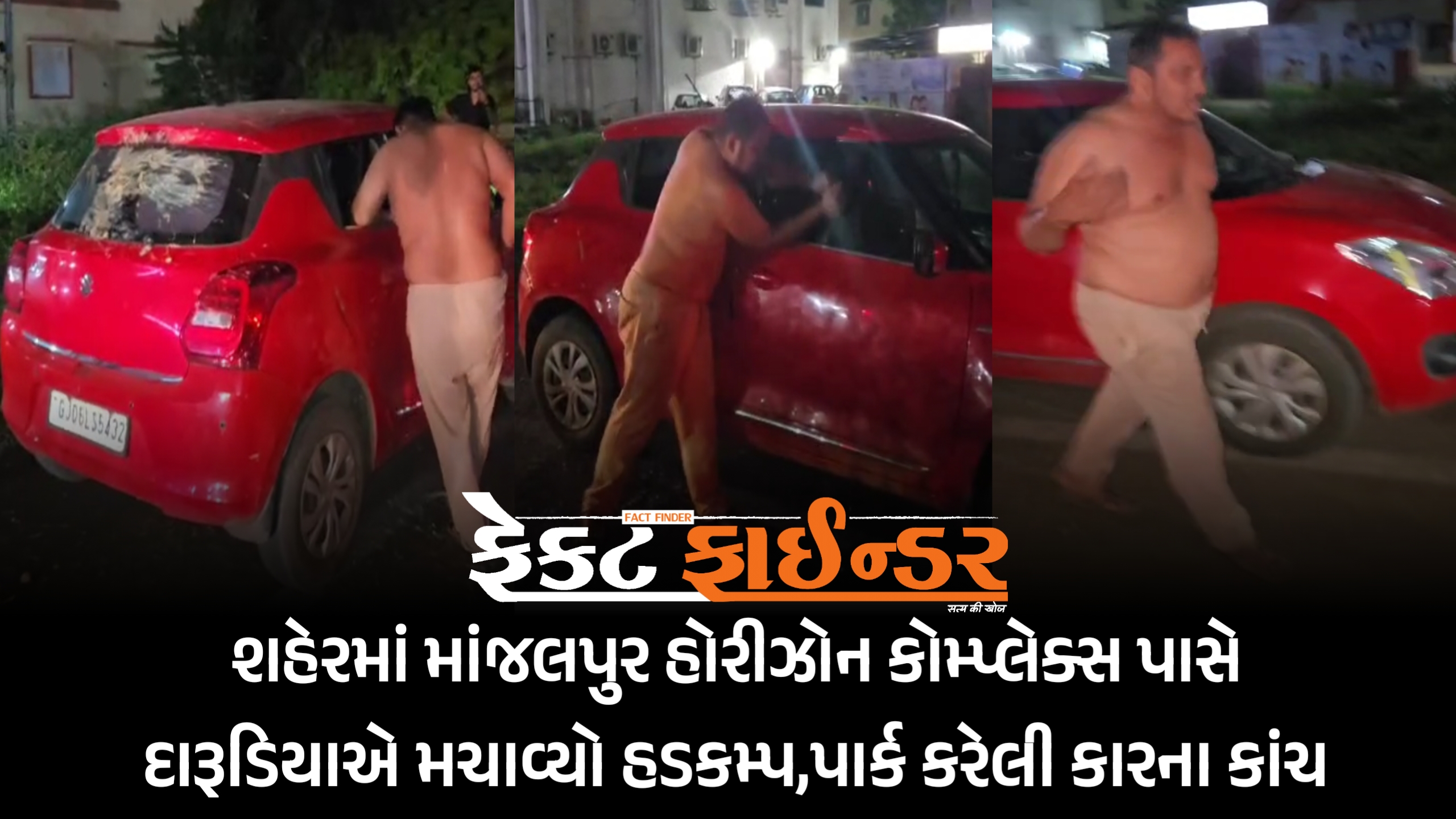 શહેરમાં માંજલપુર હોરીઝોન કોમ્પ્લેક્સ પાસે દારૂડિયાએ મચાવ્યો હડકમ્પ,પાર્ક કરેલી કારના કાંચ તોડયા