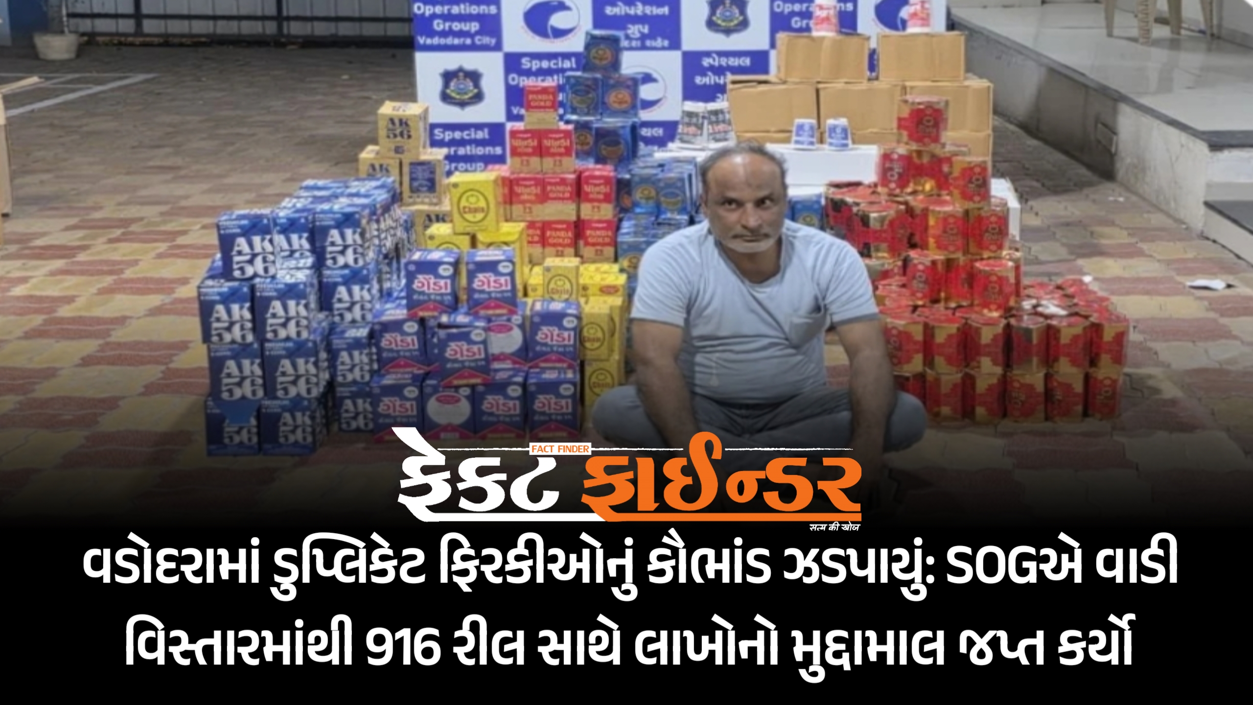 વડોદરામાં ડુપ્લિકેટ ફિરકીઓનું કૌભાંડ ઝડપાયું: SOGએ વાડી વિસ્તારમાંથી 916 રીલ સાથે લાખોનો મુદ્દામાલ જપ્ત કર્યો