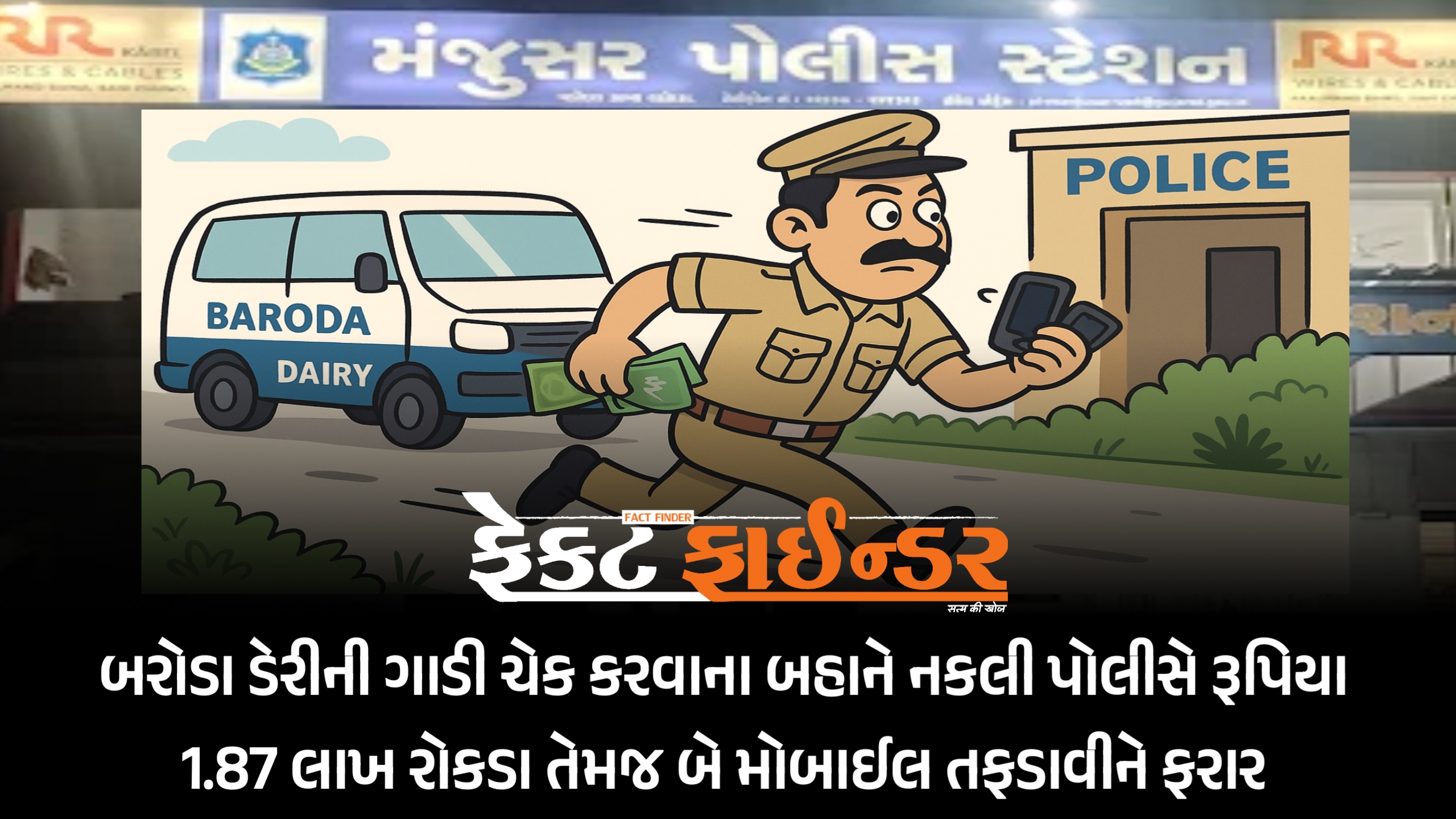 બરોડા ડેરીની ગાડી ચેક કરવાના બહાને નકલી પોલીસે રૂપિયા 1.87 લાખ રોકડા તેમજ બે મોબાઈલ તફડાવીને ફરાર