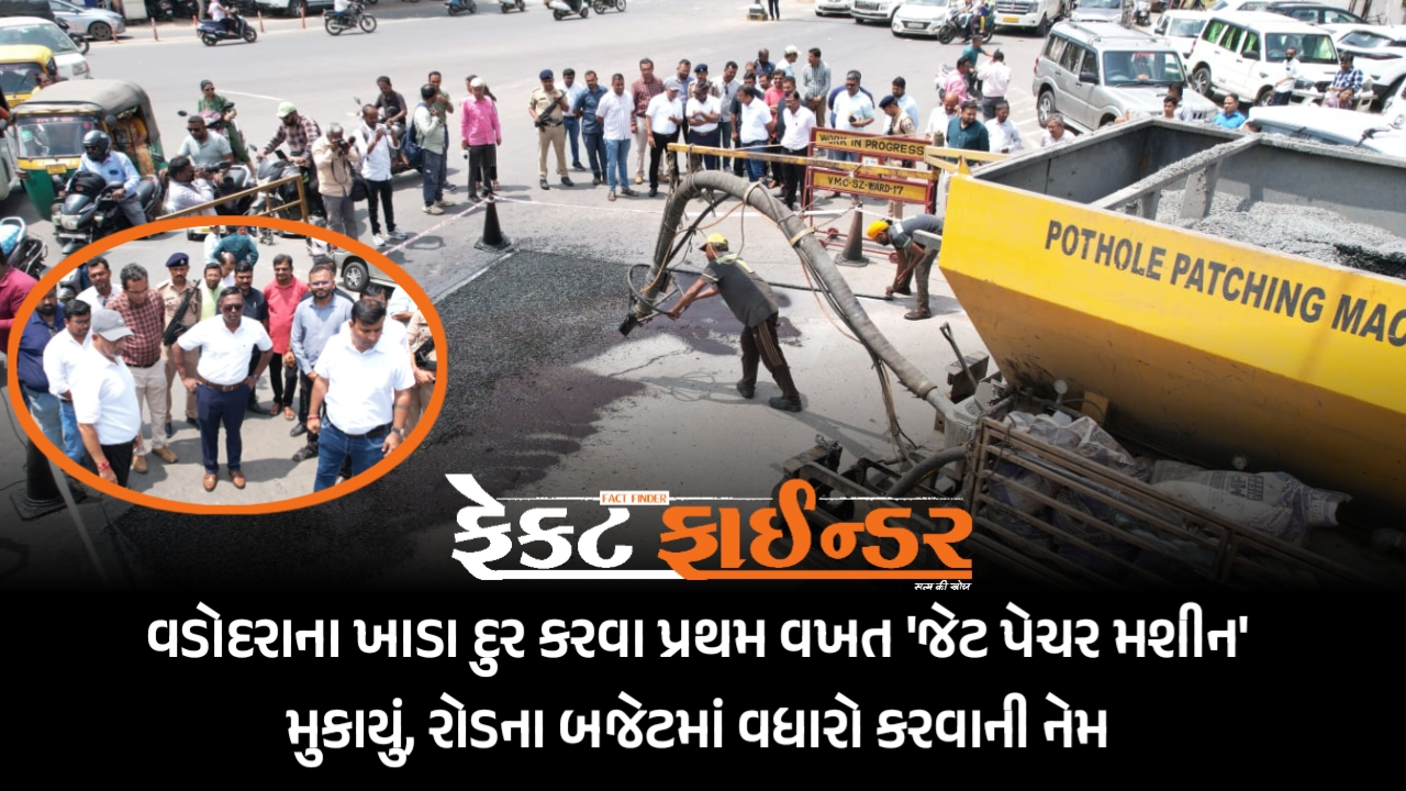 વડોદરાના ખાડા દુર કરવા પ્રથમ વખત ‘જેટ પેચર મશીન’ મુકાયું, રોડના બજેટમાં વધારો કરવાની નેમ