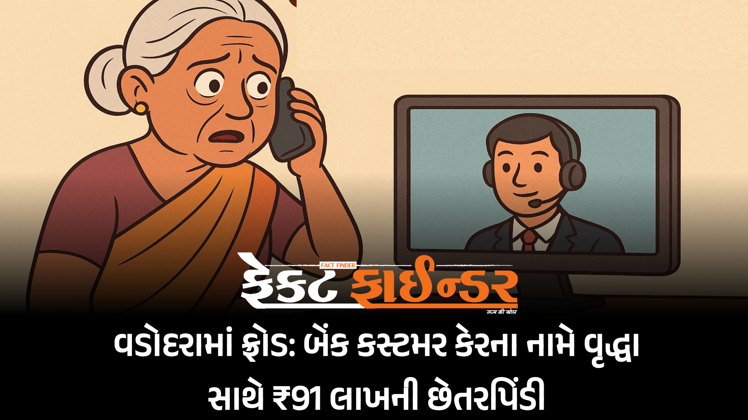 વડોદરામાં ફ્રોડ: બેંક કસ્ટમર કેરના નામે વૃદ્ધા સાથે ₹91 લાખની છેતરપિંડી