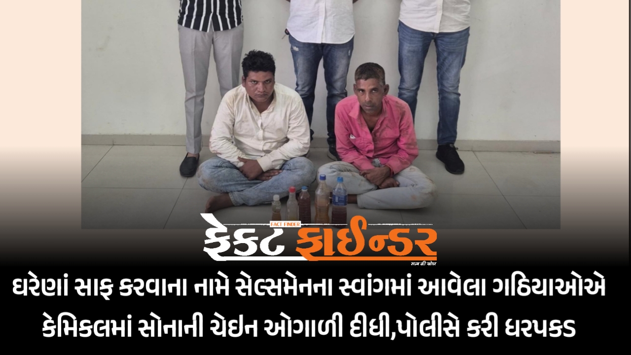 ઘરેણાં સાફ કરવાના નામે સેલ્સમેનના સ્વાંગમાં આવેલા ગઠિયાઓએ કેમિકલમાં સોનાની ચેઇન ઓગાળી દીધી,પોલીસે કરી ધરપકડ