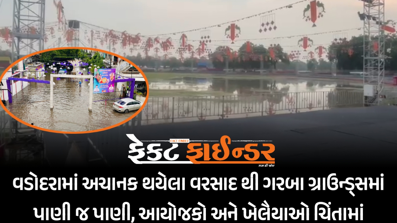 વડોદરામાં અચાનક થયેલા વરસાદ થી ગરબા ગ્રાઉન્ડ્સમાં પાણી જ પાણી, આયોજકો અને ખેલૈયાઓ ચિંતામાં