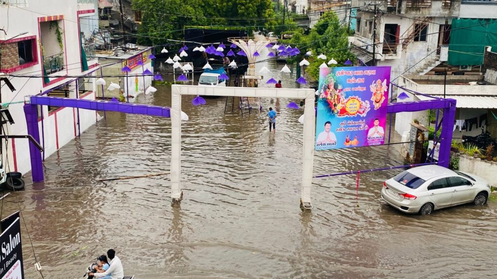 વડોદરામાં અચાનક થયેલા વરસાદ થી ગરબા ગ્રાઉન્ડ્સમાં પાણી જ પાણી, આયોજકો અને ખેલૈયાઓ ચિંતામાં