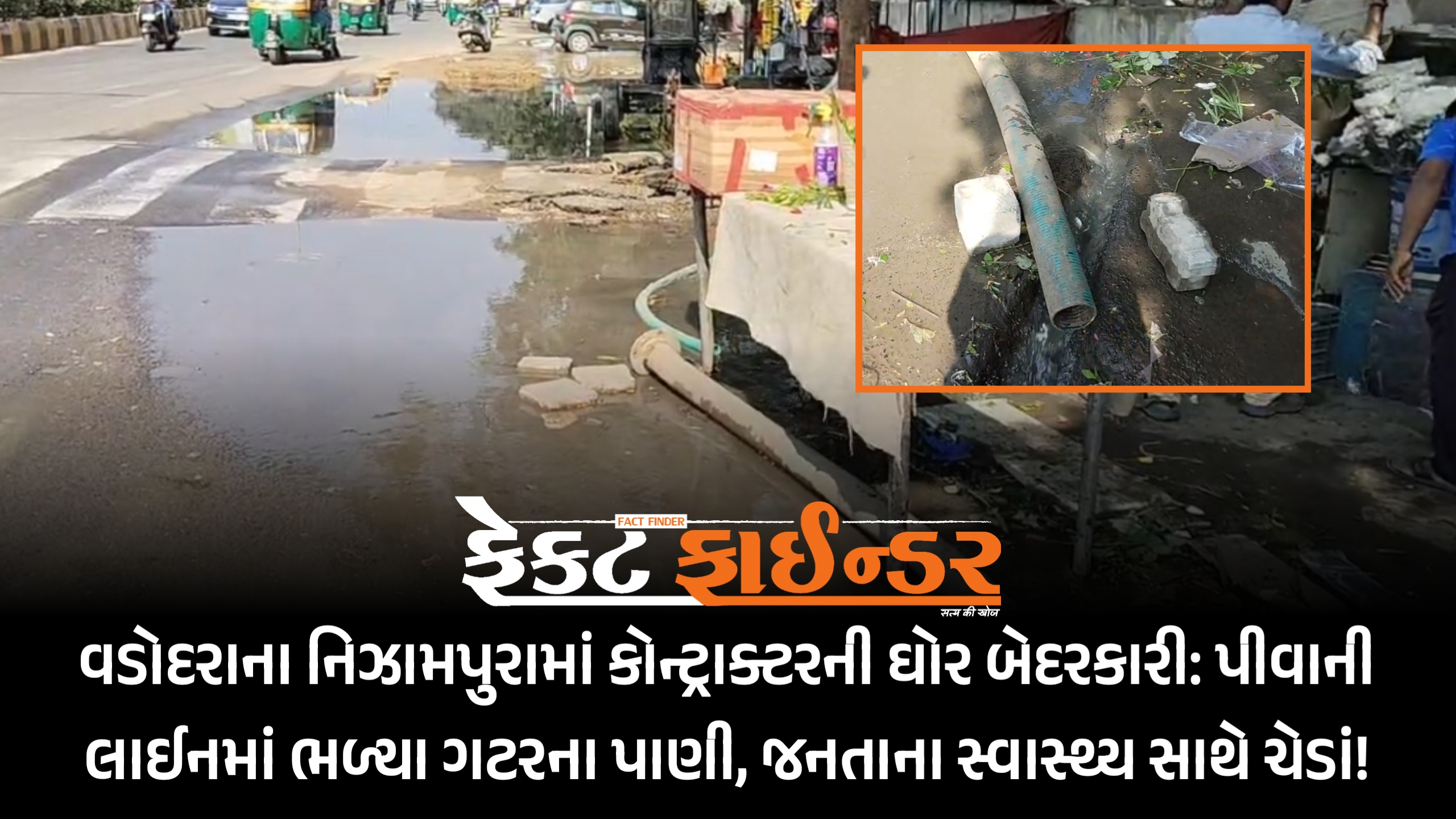 વડોદરાના નિઝામપુરામાં કોન્ટ્રાક્ટરની ઘોર બેદરકારી: પીવાની લાઈનમાં ભળ્યા ગટરના પાણી, જનતાના સ્વાસ્થ્ય સાથે ચેડાં!