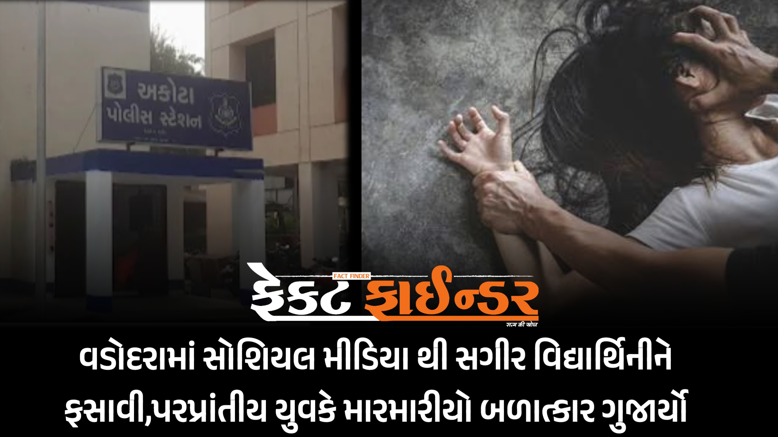 વડોદરામાં સોશિયલ મીડિયા થી સગીર વિદ્યાર્થિનીને ફસાવી,પરપ્રાંતીય યુવકે મારમારીયો બળાત્કાર ગુજાર્યો