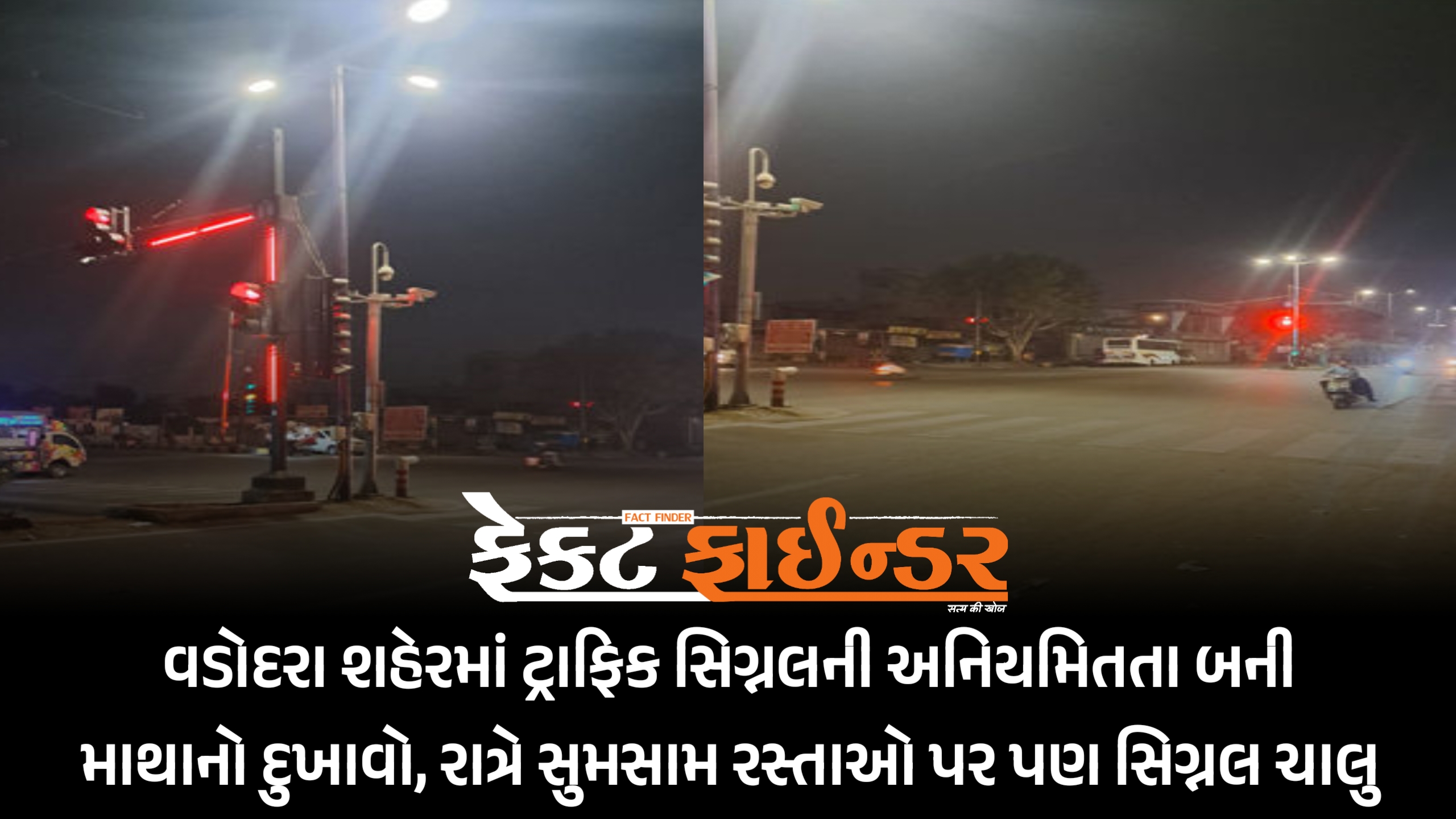વડોદરા શહેરમાં ટ્રાફિક સિગ્નલની અનિયમિતતા બની માથાનો દુખાવો, રાત્રે સુમસામ રસ્તાઓ પર પણ સિગ્નલ ચાલુ