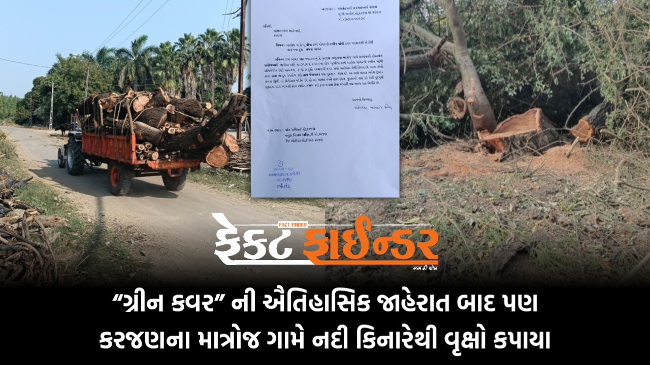 “ગ્રીન કવર” ની ઐતિહાસિક જાહેરાત બાદ પણ કરજણના માત્રોજ ગામે નદી કિનારેથી વૃક્ષો કપાયા