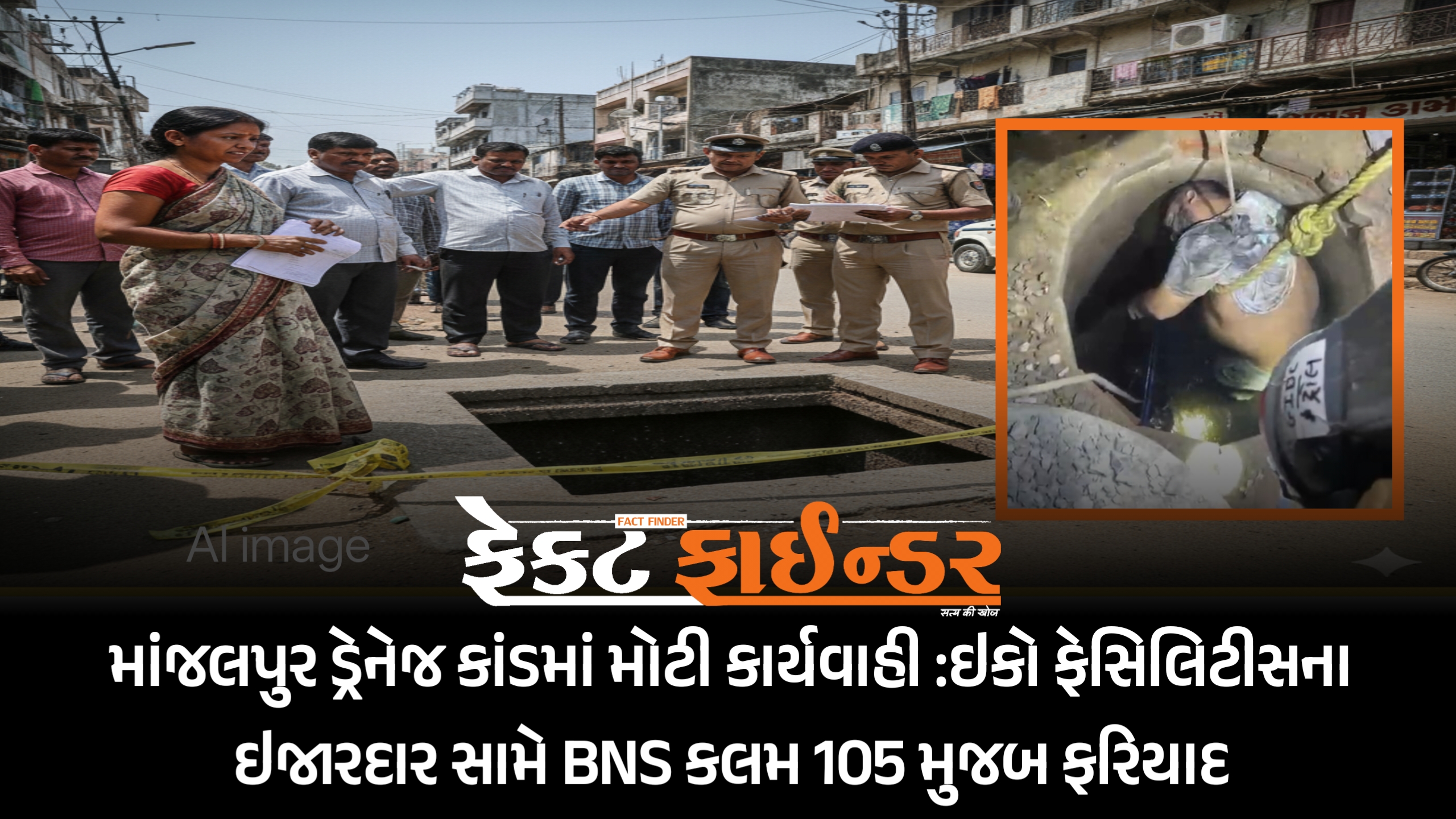 માંજલપુર ડ્રેનેજ કાંડમાં મોટી કાર્યવાહી :ઇકો ફેસિલિટીસના ઇજારદાર સામે BNS કલમ 105 મુજબ ફરિયાદ