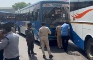 વડોદરા એસટી ડેપોમાં બે બસો વચ્ચે જોરદાર ટક્કર; રિવર્સ લેતી વોલ્વોએ એસટીને ફંગોળી