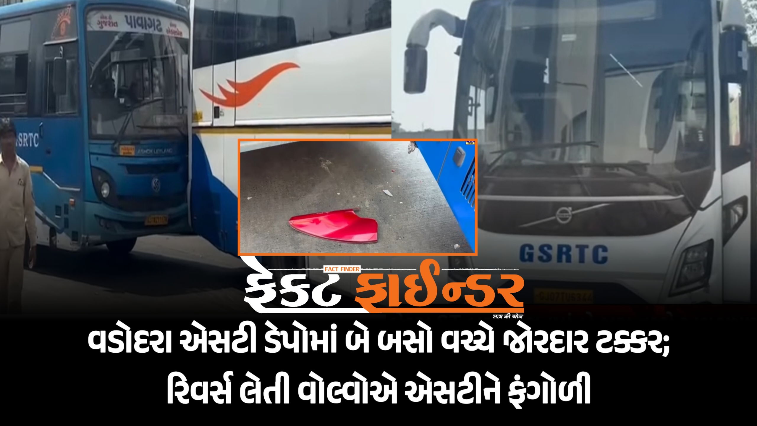 વડોદરા એસટી ડેપોમાં બે બસો વચ્ચે જોરદાર ટક્કર; રિવર્સ લેતી વોલ્વોએ એસટીને ફંગોળી