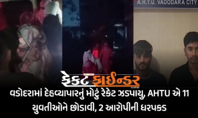 Vadodara5 days agoવડોદરામાં દેહવ્યાપારનું મોટું રેકેટ ઝડપાયુ, AHTU એ 11 યુવતીઓને છોડાવી, 2 આરોપીની ધરપકડ