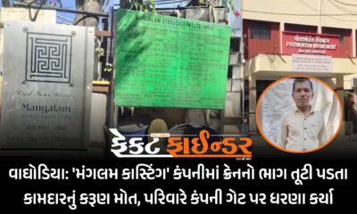 Waghodia5 days agoવાઘોડિયા: ‘મંગલમ કાસ્ટિંગ’ કંપનીમાં ક્રેનનો ભાગ તૂટી પડતા કામદારનું કરૂણ મોત, પરિવારે કંપની ગેટ પર ધરણા કર્યા
