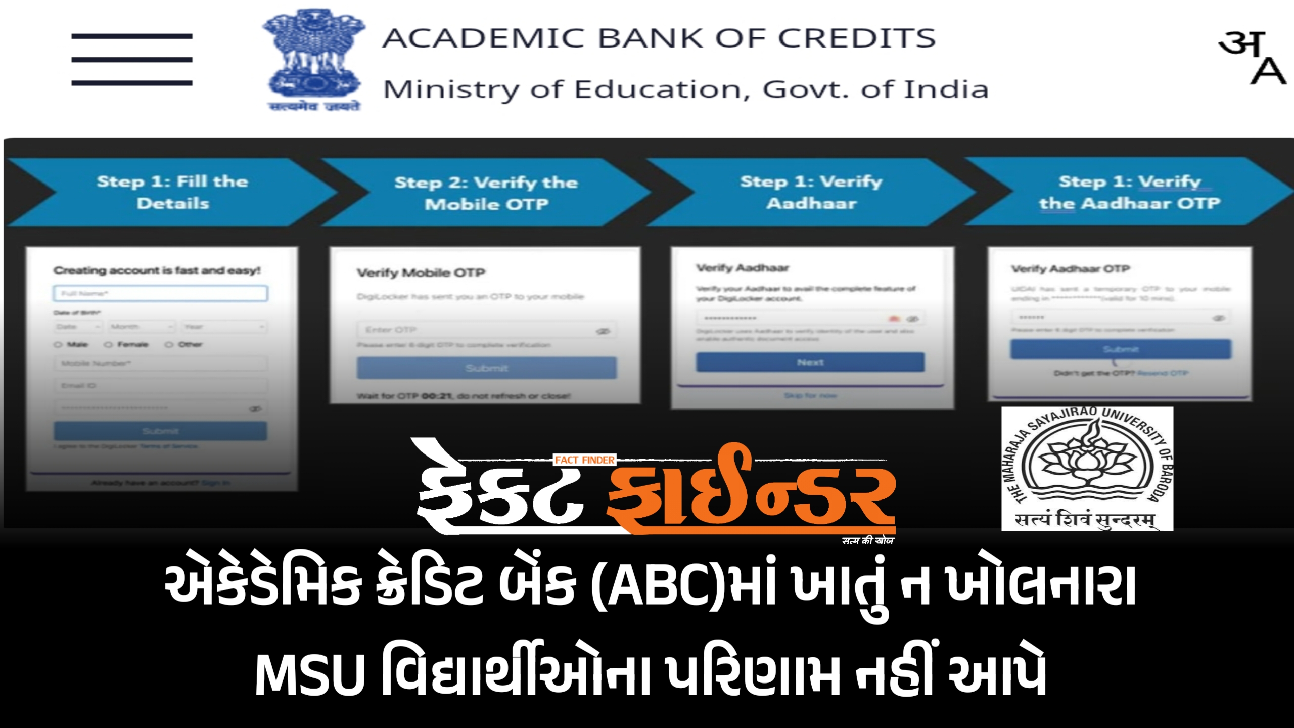 એકેડેમિક ક્રેડિટ બેંક (ABC)માં ખાતું ન ખોલનારા MSU વિદ્યાર્થીઓના પરિણામ નહીં આપે