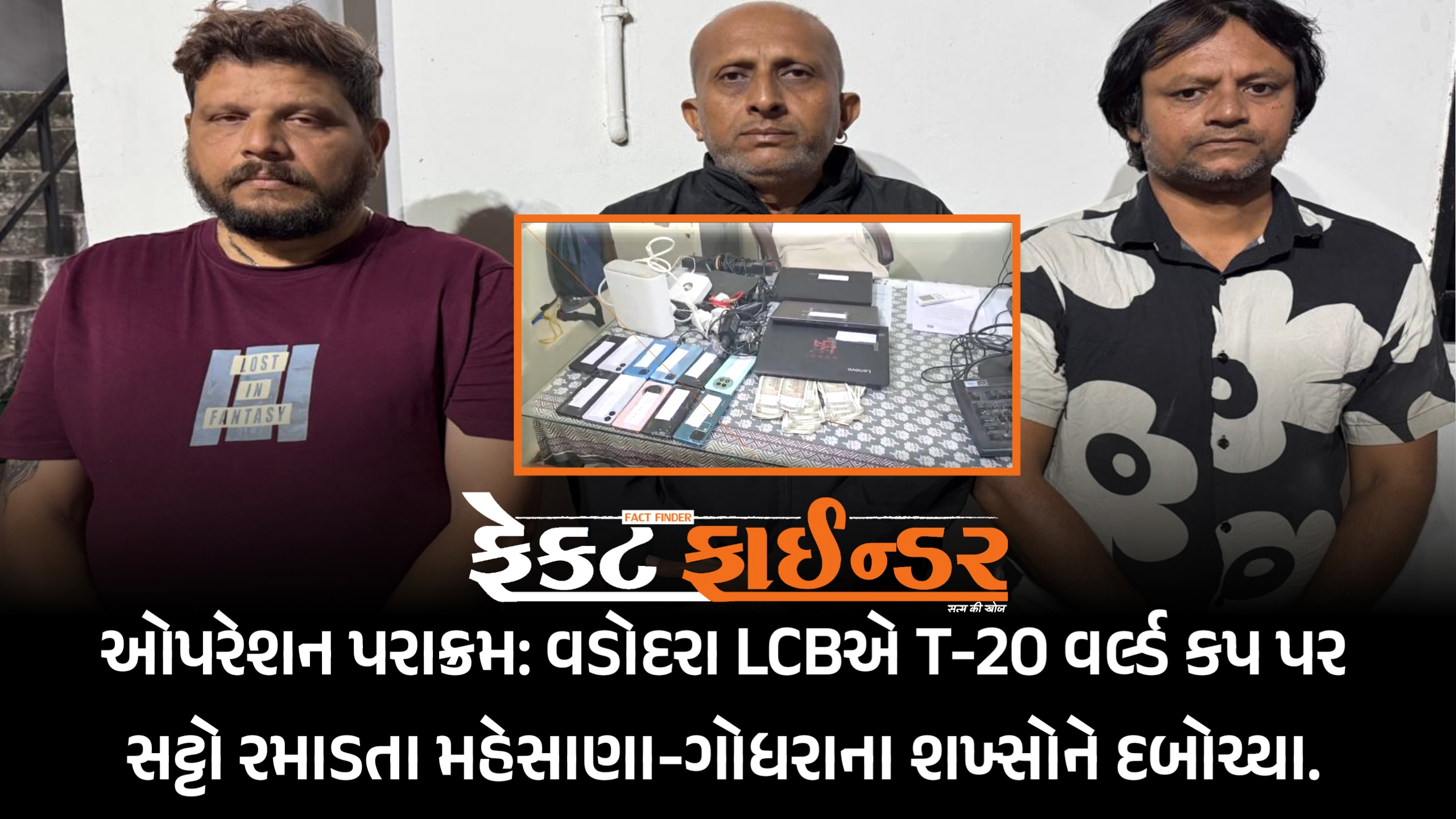 ઓપરેશન પરાક્રમ: વડોદરા LCBએ T-20 વર્લ્ડ કપ પર સટ્ટો રમાડતા મહેસાણા-ગોધરાના શખ્સોને દબોચ્યા.