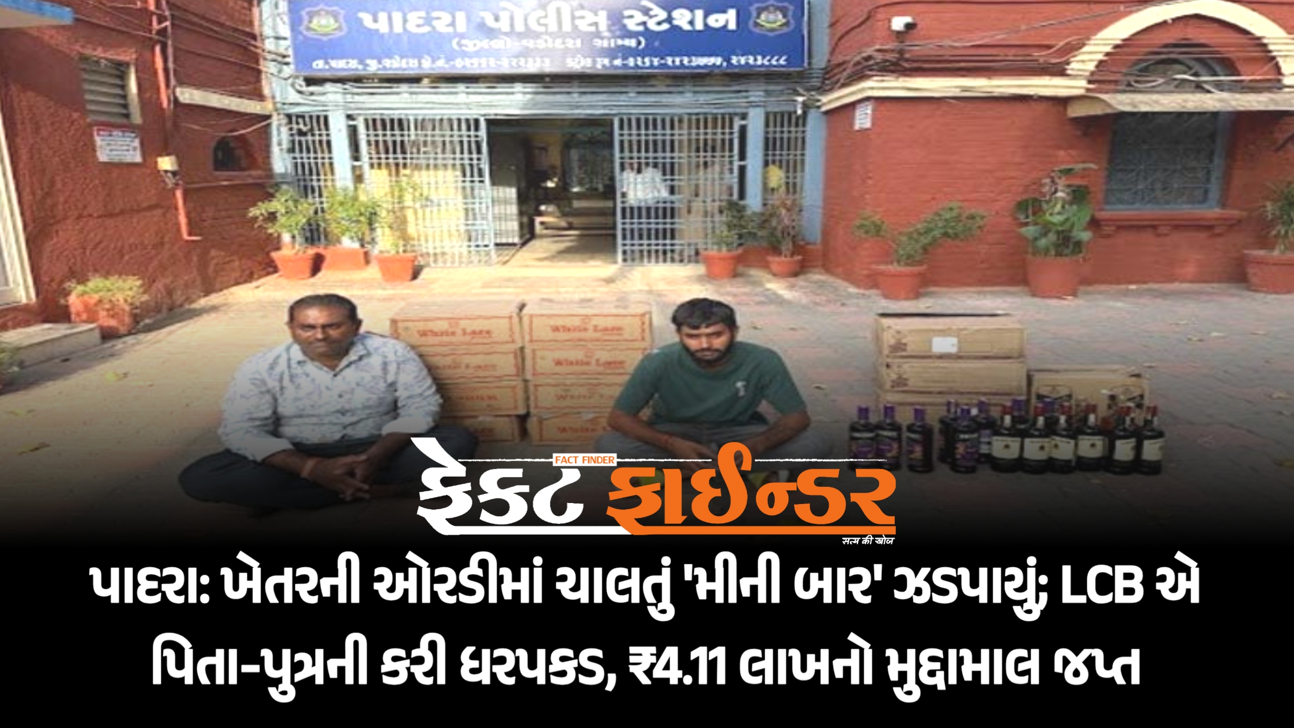 પાદરા: ખેતરની ઓરડીમાં ચાલતું ‘મીની બાર’ ઝડપાયું; LCB એ પિતા-પુત્રની કરી ધરપકડ, ₹4.11 લાખનો મુદ્દામાલ જપ્ત