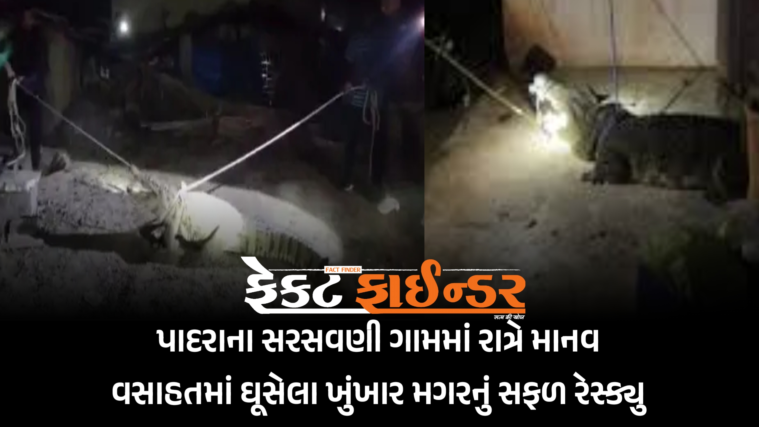 પાદરાના સરસવણી ગામમાં રાત્રે માનવ વસાહતમાં ઘૂસેલા ખુંખાર મગરનું સફળ રેસ્ક્યુ