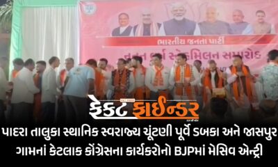 Dabhoi5 days agoડભોઇ : મેન્ડેટ જાહેર થયા બાદ 6 કોંગ્રેસી અગ્રણીઓ વિધિવત ભાજપમાં જોડાયા,40 વર્ષના કોંગ્રેસના દબદબાનો અંત!