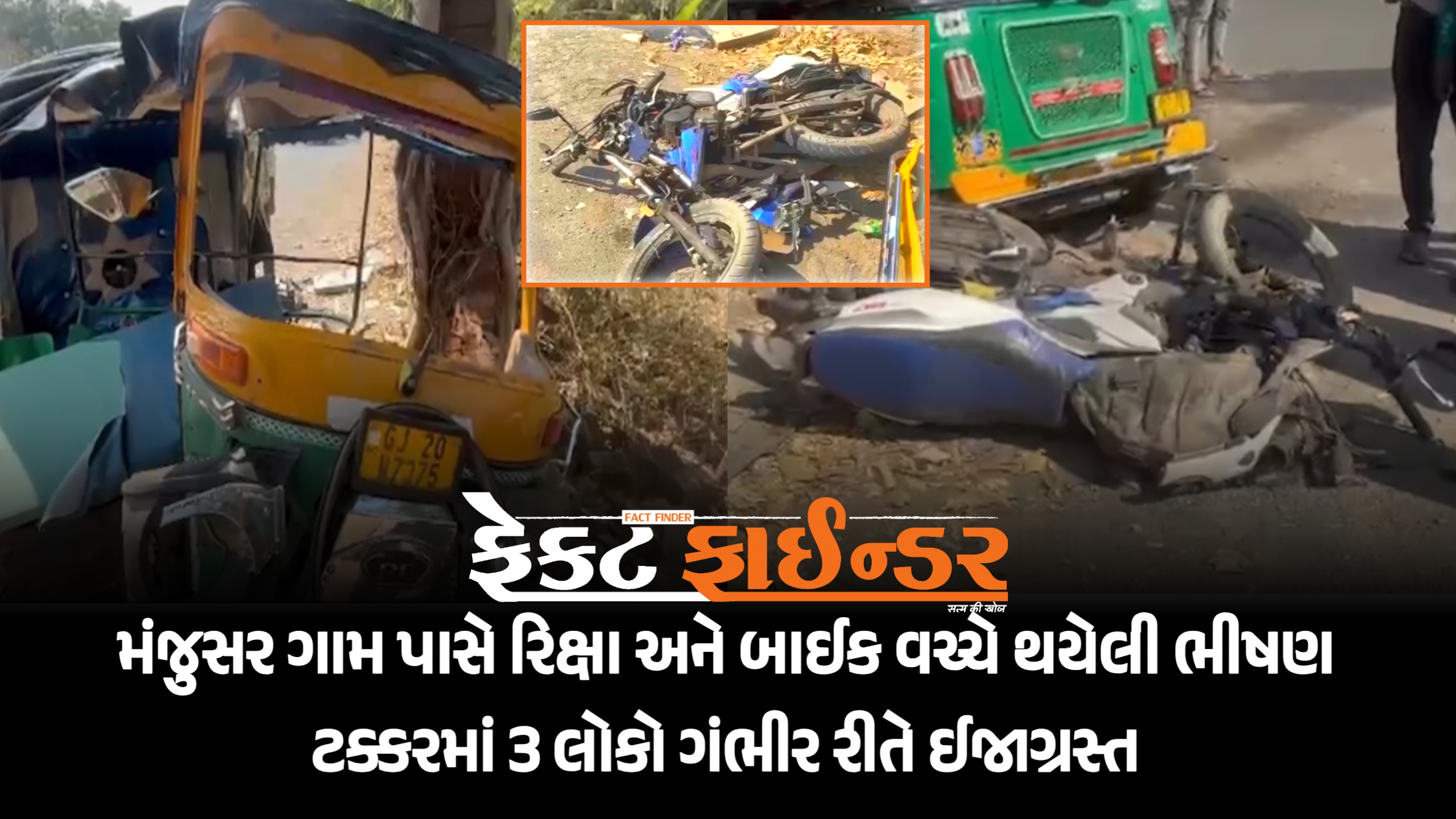 મંજુસર ગામ પાસે રિક્ષા અને બાઈક વચ્ચે થયેલી ભીષણ ટક્કરમાં 3 લોકો ગંભીર રીતે ઈજાગ્રસ્ત