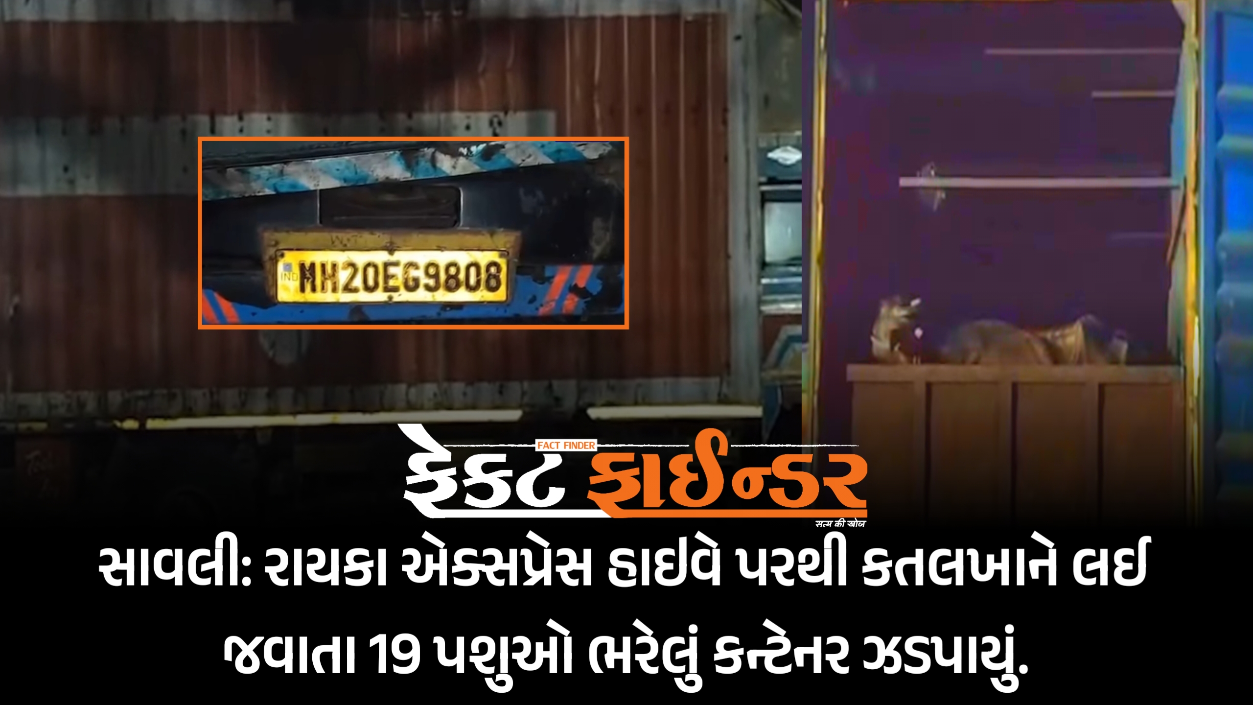 સાવલી: રાયકા એક્સપ્રેસ હાઇવે પરથી કતલખાને લઈ જવાતા 19 પશુઓ ભરેલું કન્ટેનર ઝડપાયું.