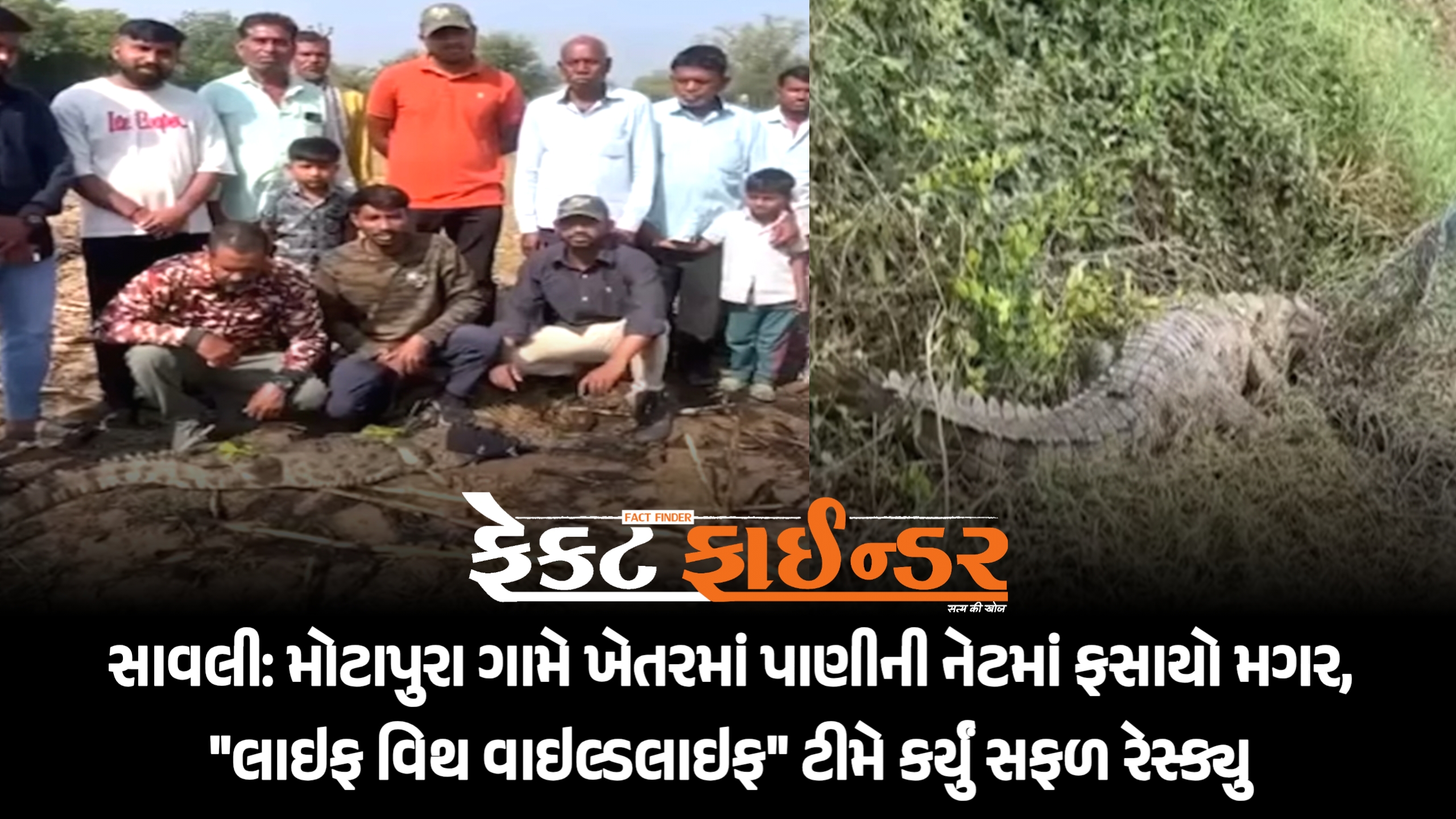 સાવલી: મોટાપુરા ગામે ખેતરમાં પાણીની નેટમાં ફસાયો મગર, “લાઇફ વિથ વાઇલ્ડલાઇફ” ટીમે કર્યું સફળ રેસ્ક્યુ