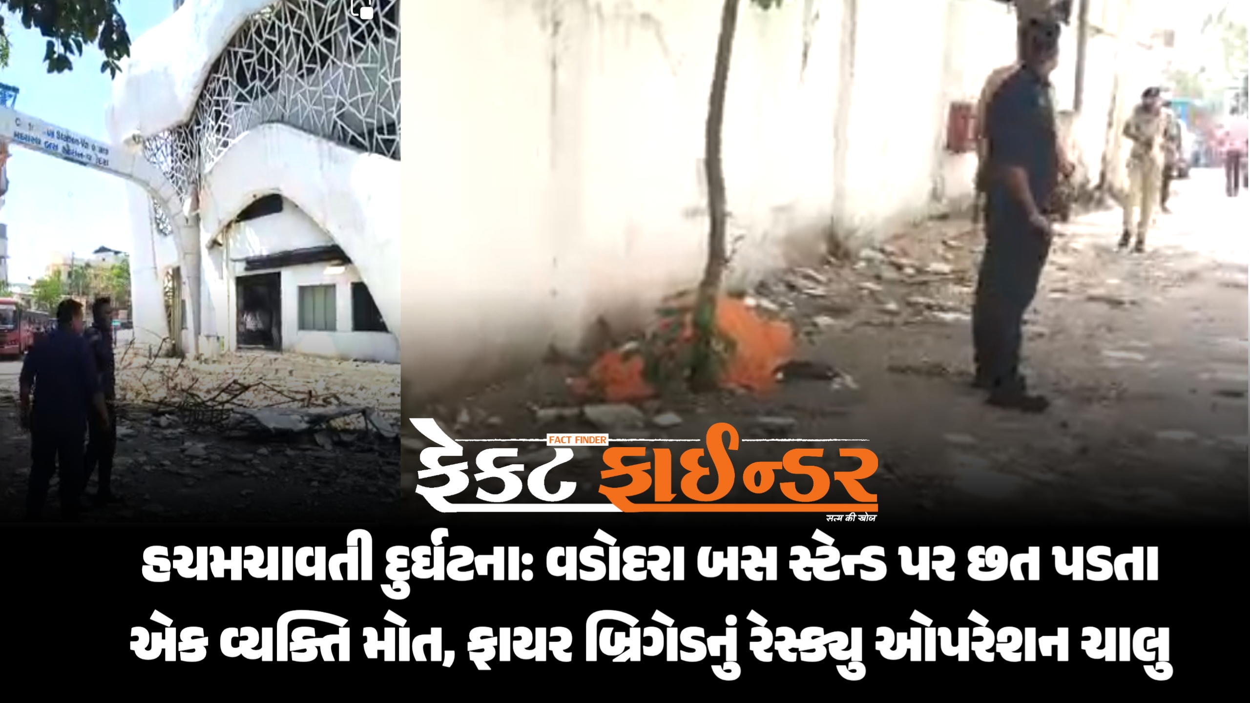 હચમચાવતી દુર્ઘટના: વડોદરા બસ સ્ટેન્ડ પર છત પડતા એક વ્યક્તિ મોત, ફાયર બ્રિગેડનું રેસ્ક્યુ ઓપરેશન ચાલુ