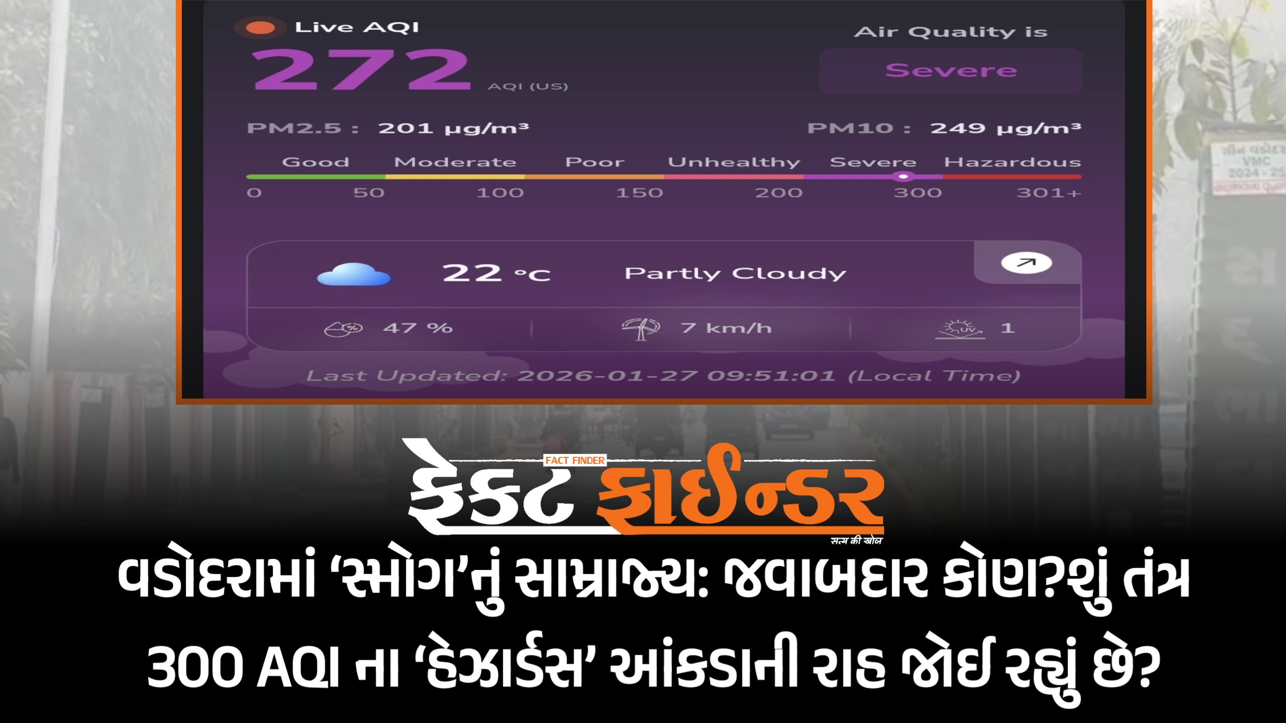 વડોદરામાં ‘સ્મોગ’નું સામ્રાજ્ય: જવાબદાર કોણ?શું તંત્ર 300 AQI ના ‘હેઝાર્ડસ’ આંકડાની રાહ જોઈ રહ્યું છે?