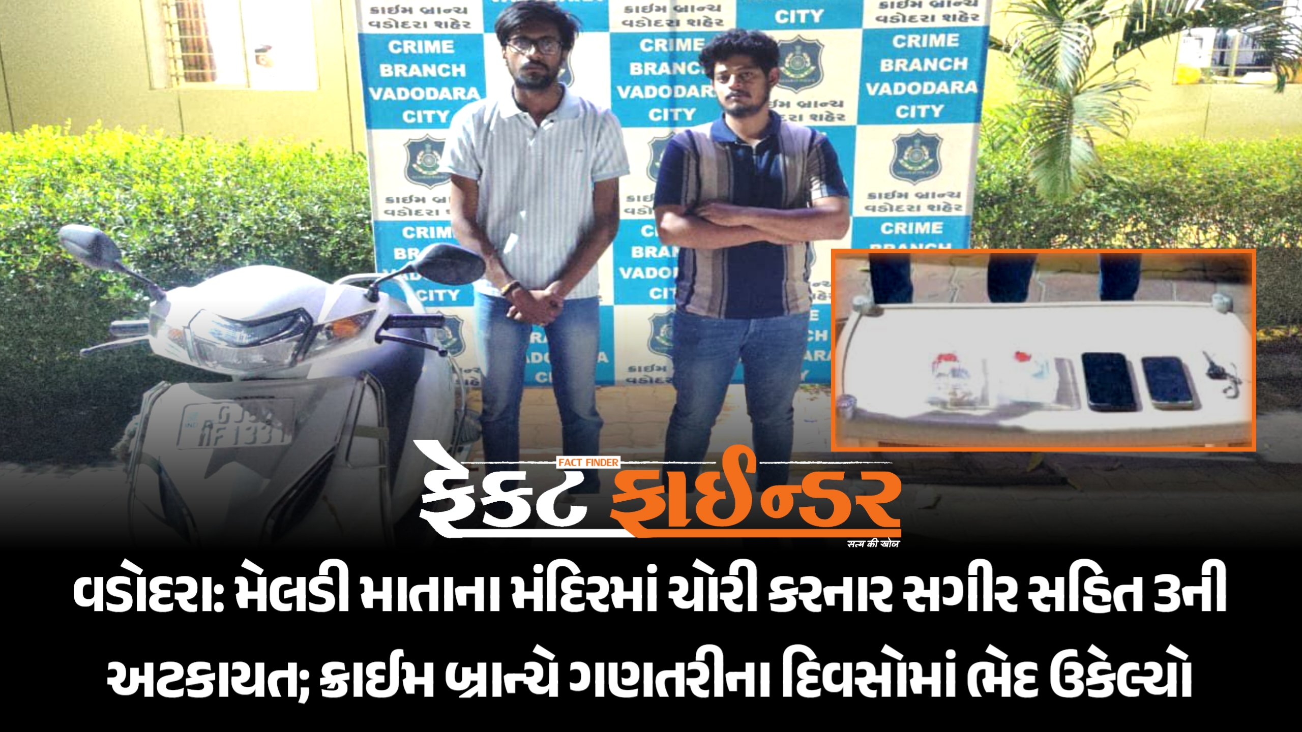 વડોદરા: મેલડી માતાના મંદિરમાં ચોરી કરનાર સગીર સહિત 3ની અટકાયત; ક્રાઈમ બ્રાન્ચે ગણતરીના દિવસોમાં ભેદ ઉકેલ્યો