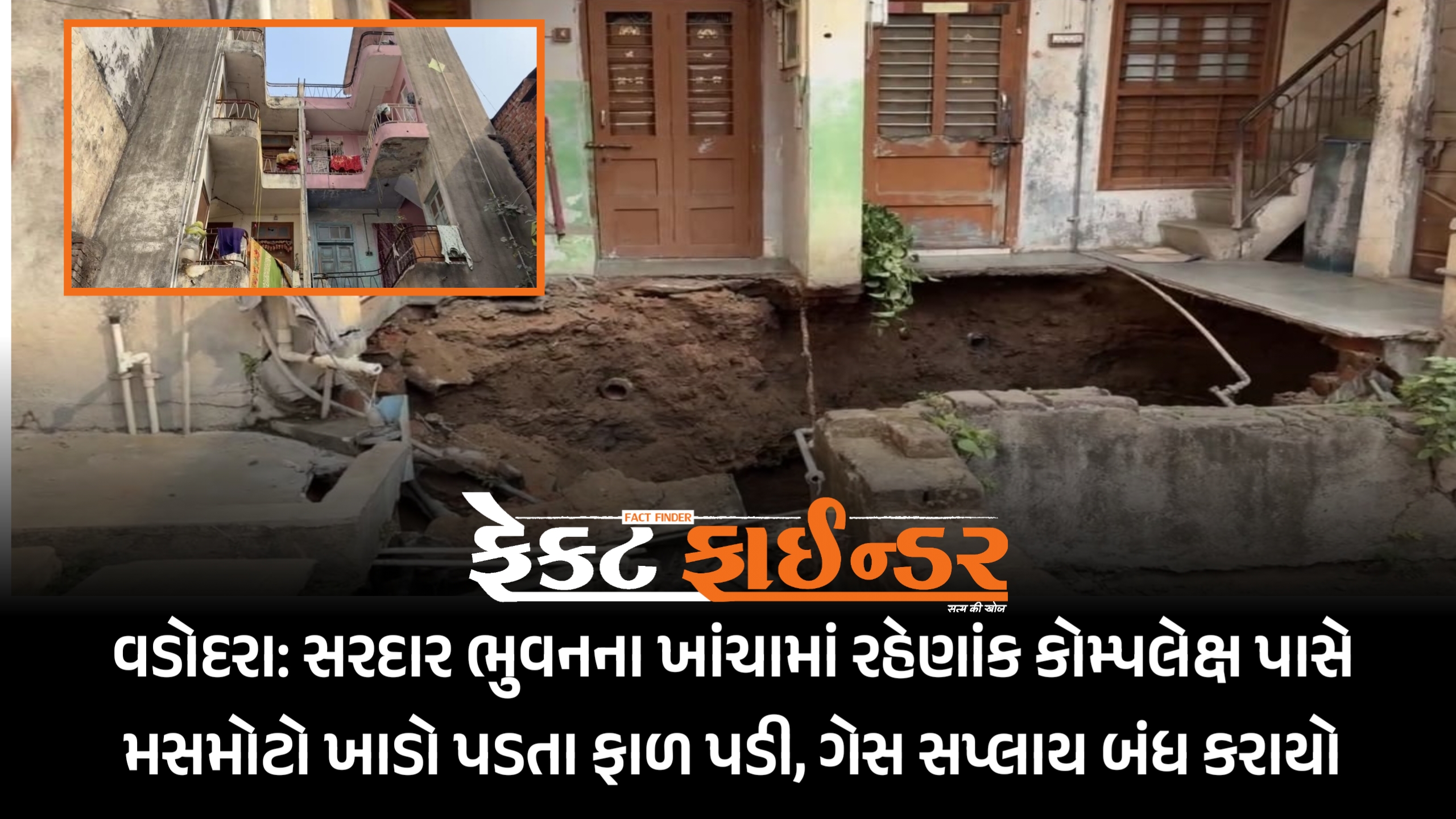 વડોદરા: સરદાર ભુવનના ખાંચામાં રહેણાંક કોમ્પલેક્ષ પાસે મસમોટો ખાડો પડતા ફાળ પડી, ગેસ સપ્લાય બંધ કરાયો