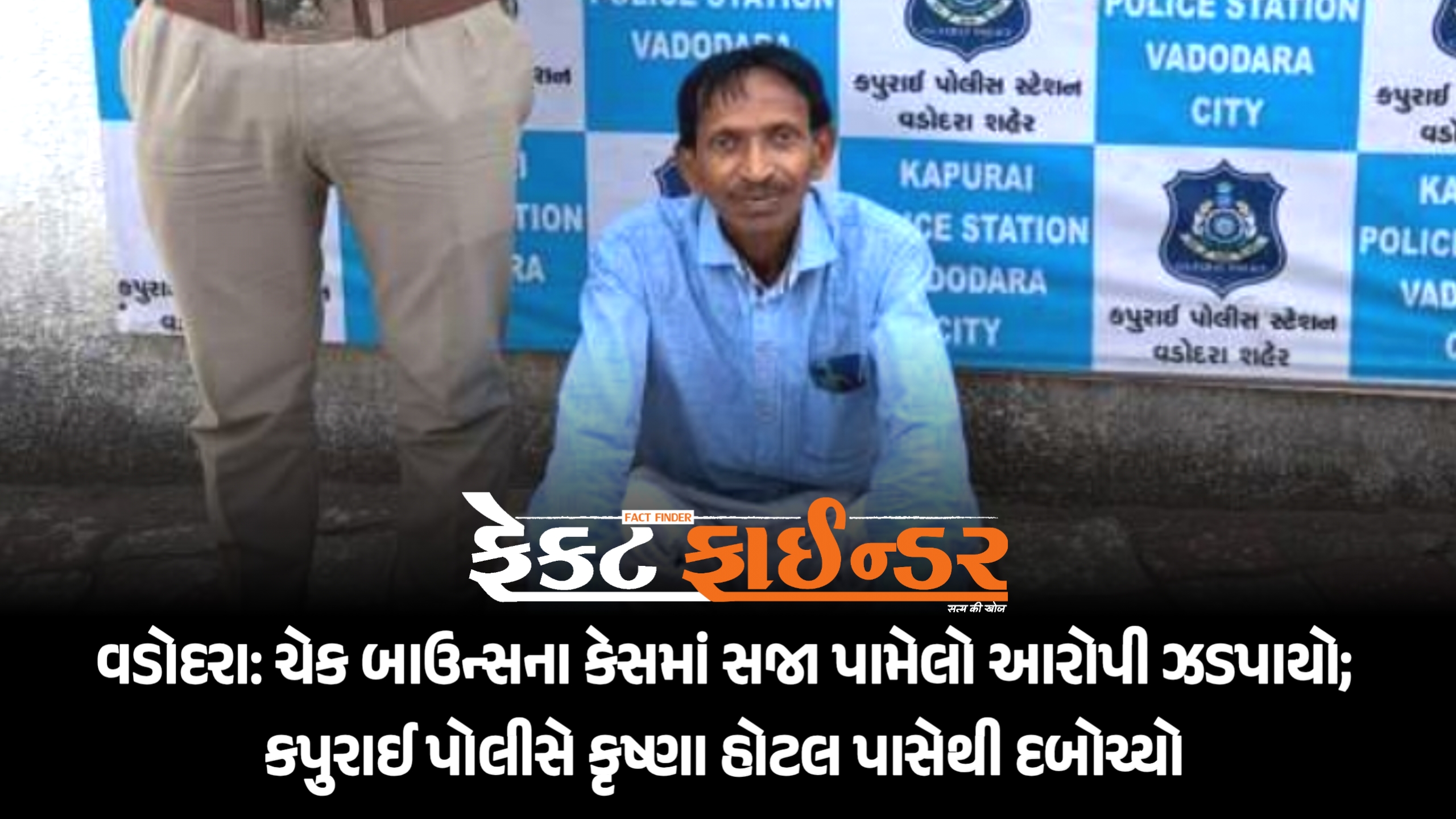 વડોદરા: ચેક બાઉન્સના કેસમાં સજા પામેલો આરોપી ઝડપાયો; કપુરાઈ પોલીસે કૃષ્ણા હોટલ પાસેથી દબોચ્યો