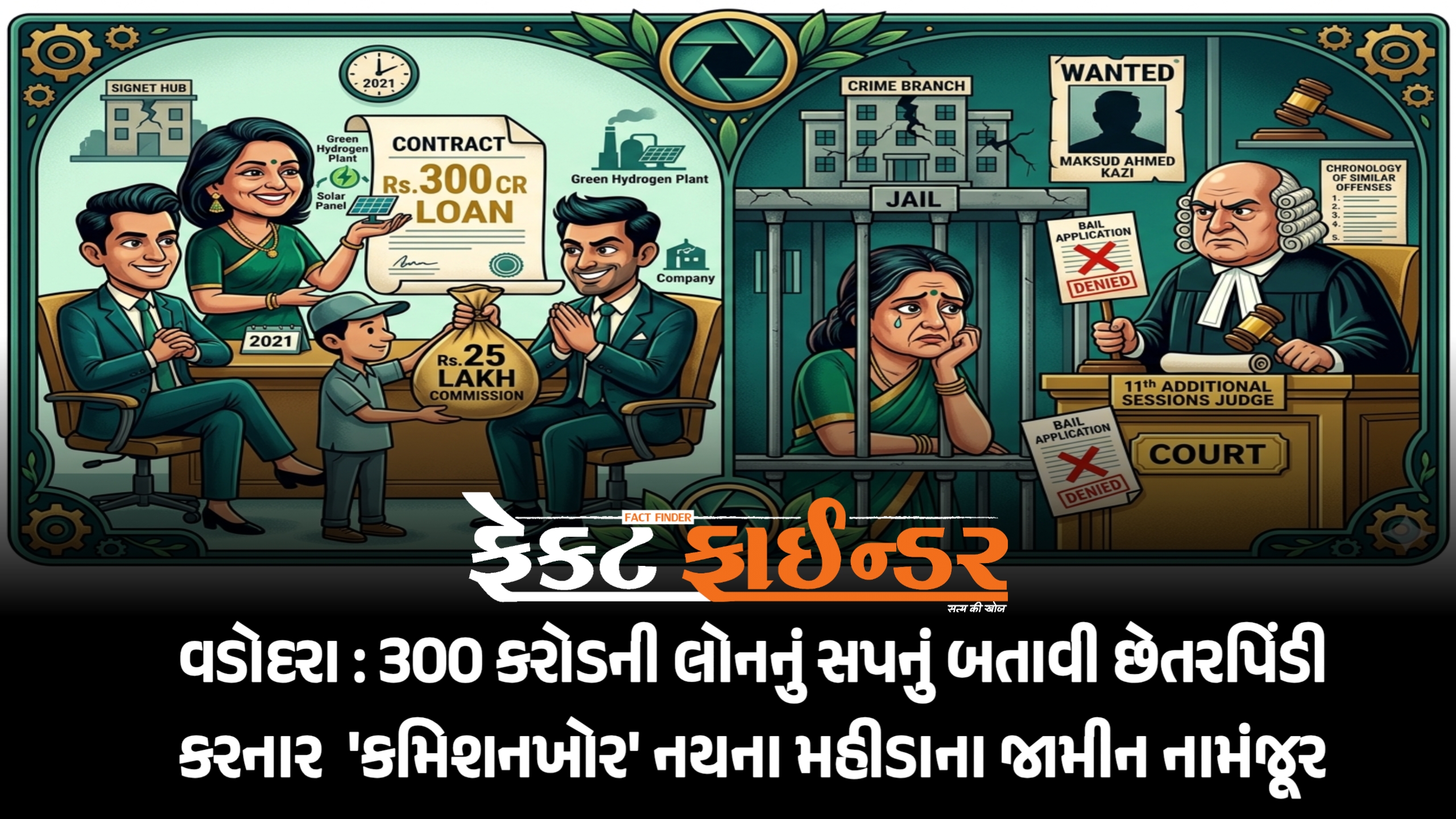 વર્ષ 2021માં અક્ષરચોક સ્થિત સિગ્નેટ હબમાં કાર્યરત ‘સહયોગ ફાઈનાન્સિયલ સર્વિસ’ મારફતે નયના મહીડા અને તેના પુત્ર આકાશ મહીડાએ વલસાડની એક કંપનીને રૂ. 300 કરોડની લોન અપાવવાની લાલચ આપી હતી. સોલાર પ્રોજેક્ટ અને ગ્રીન હાઈડ્રોજન પ્લાન્ટ માટે લોન અપાવવાના બહાને કમિશન તરીકે 25 લાખ રૂપિયા પડાવ્યા હતા. જોકે, લોન મંજૂર ન થતા અને નાણાં પરત ન મળતા છેતરપિંડીનો મામલો ક્રાઈમ બ્રાન્ચ સુધી પહોંચ્યો હતો.
