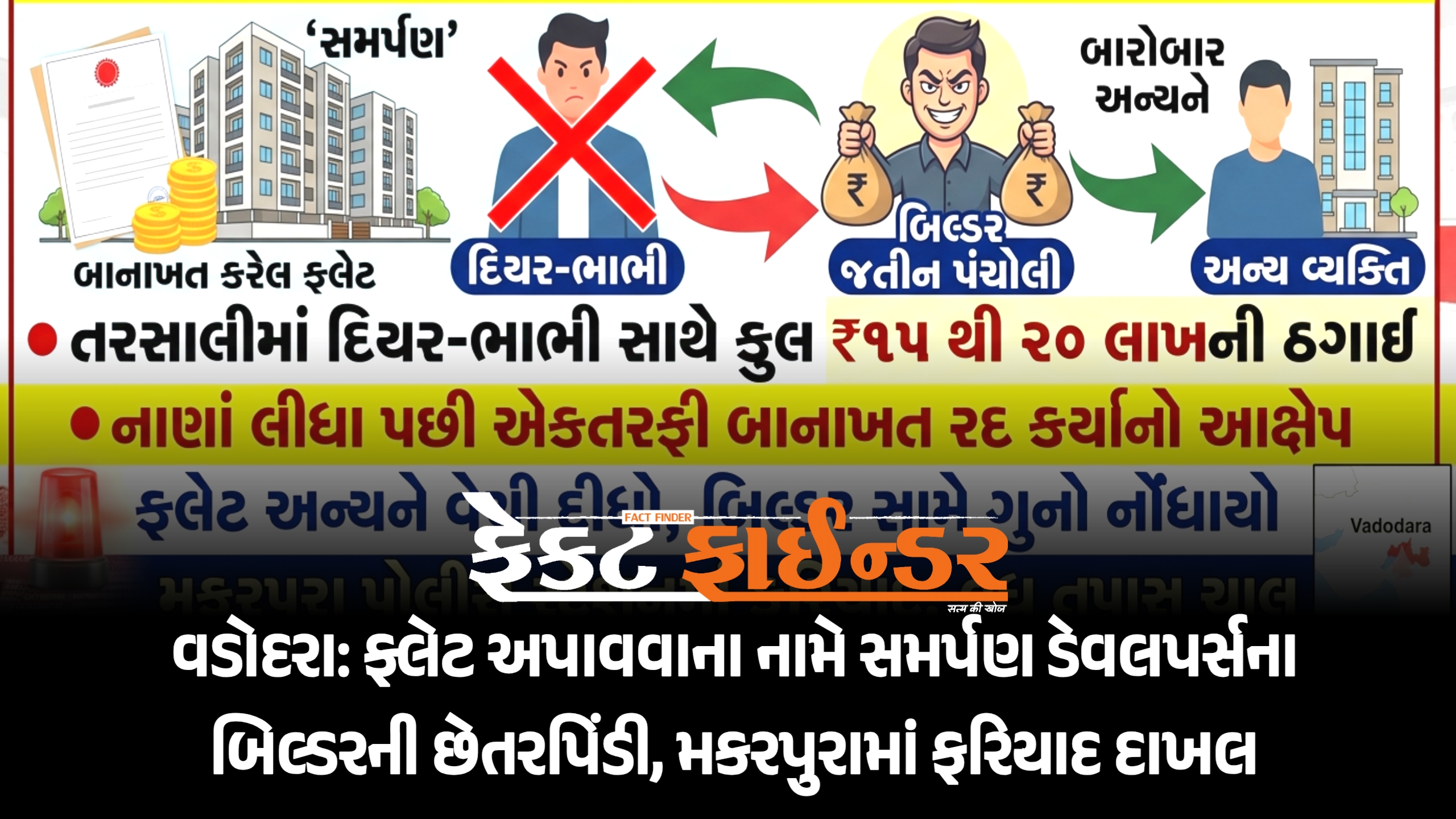 વડોદરા: ફ્લેટ અપાવવાના નામે સમર્પણ ડેવલપર્સના બિલ્ડરની છેતરપિંડી, મકરપુરામાં ફરિયાદ દાખલ