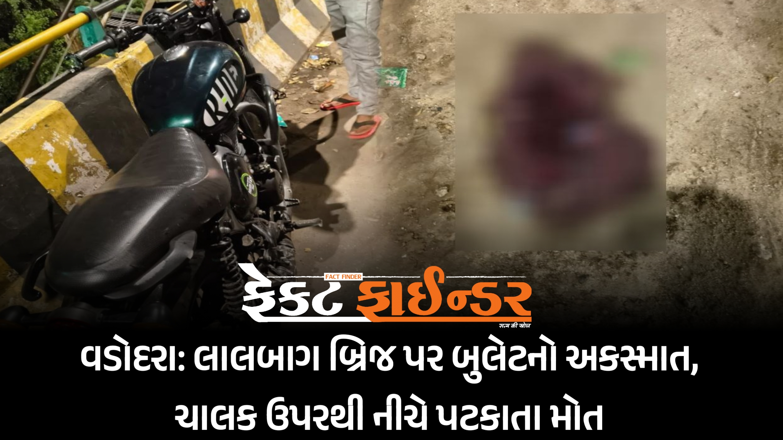 વડોદરા: લાલબાગ બ્રિજ પર બુલેટનો અકસ્માત, ચાલક ઉપરથી નીચે પટકાતા મોત