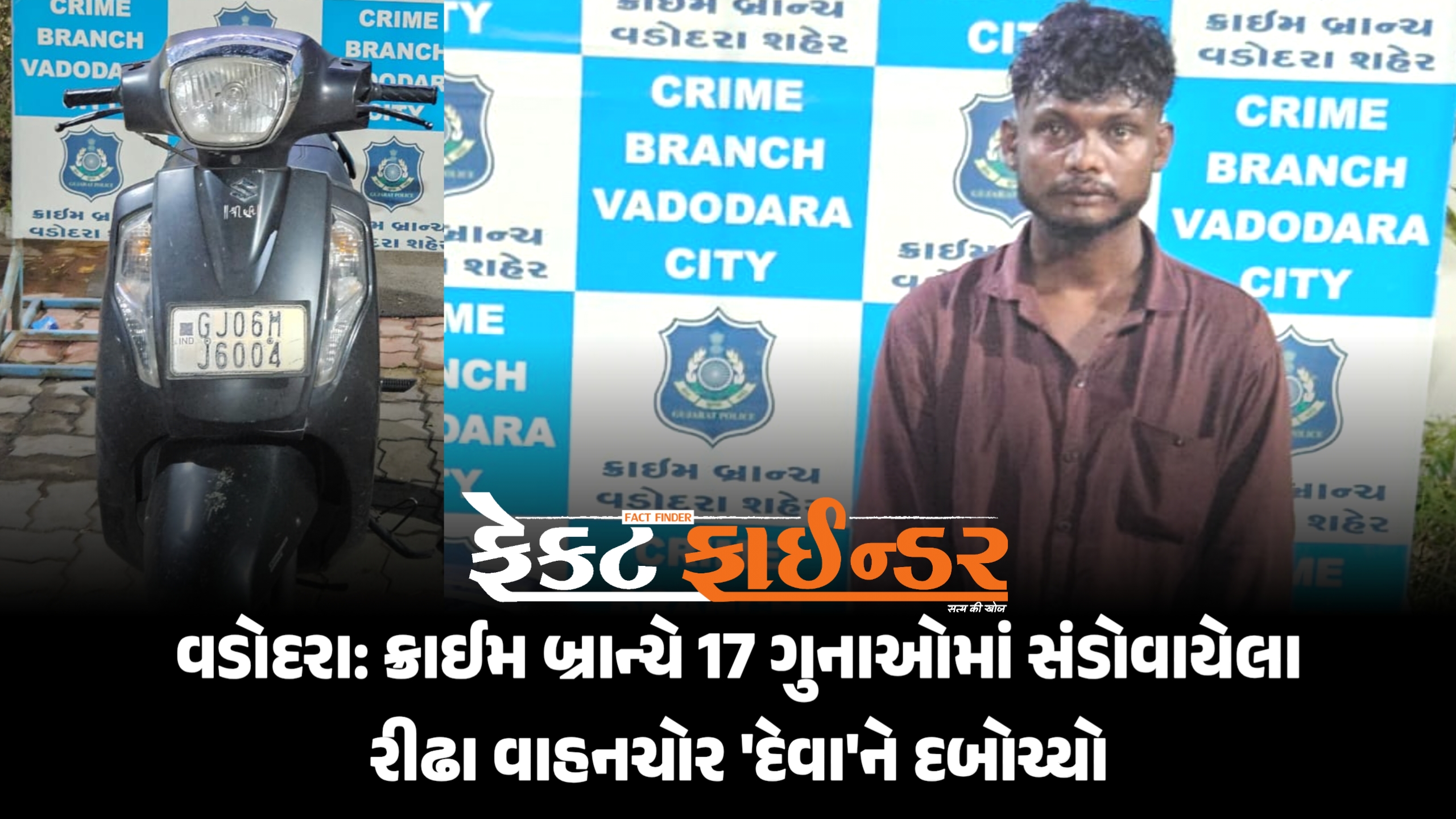 વડોદરા: ક્રાઈમ બ્રાન્ચે 17 ગુનાઓમાં સંડોવાયેલા રીઢા વાહનચોર ‘દેવા’ને દબોચ્યો