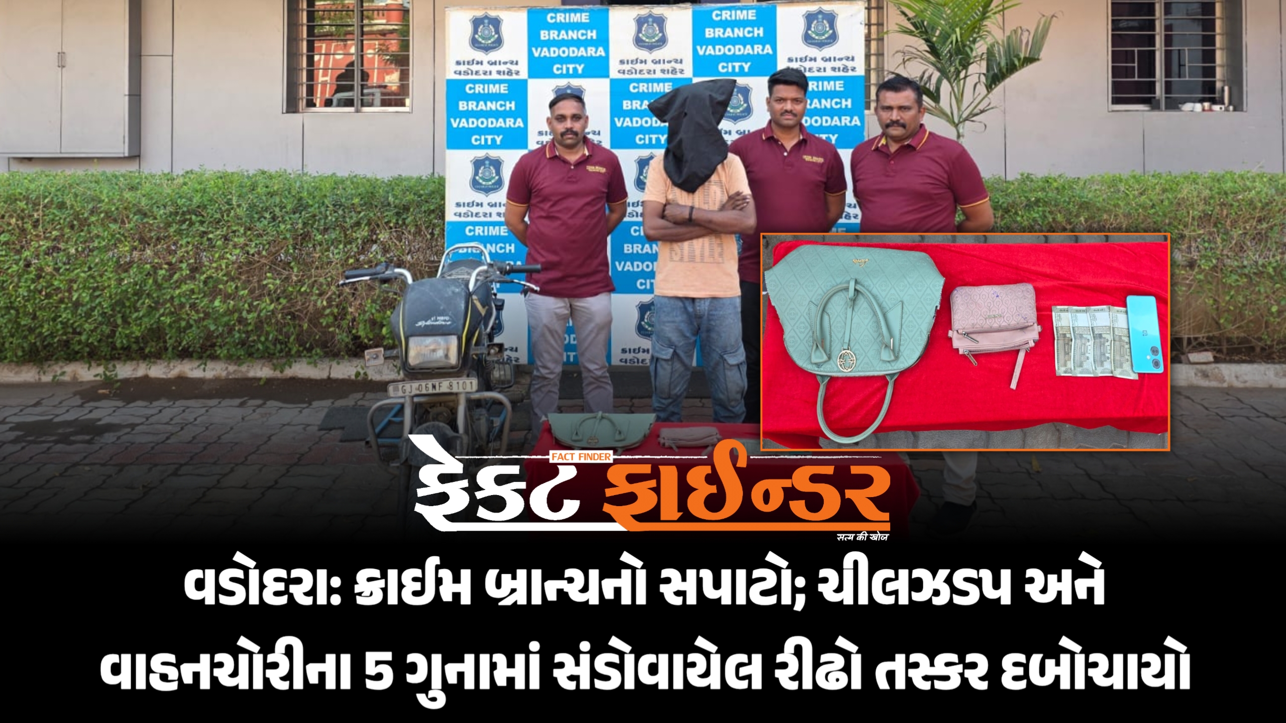 વડોદરા: ક્રાઈમ બ્રાન્ચનો સપાટો; ચીલઝડપ અને વાહનચોરીના 5 ગુનામાં સંડોવાયેલ રીઢો તસ્કર દબોચાયો