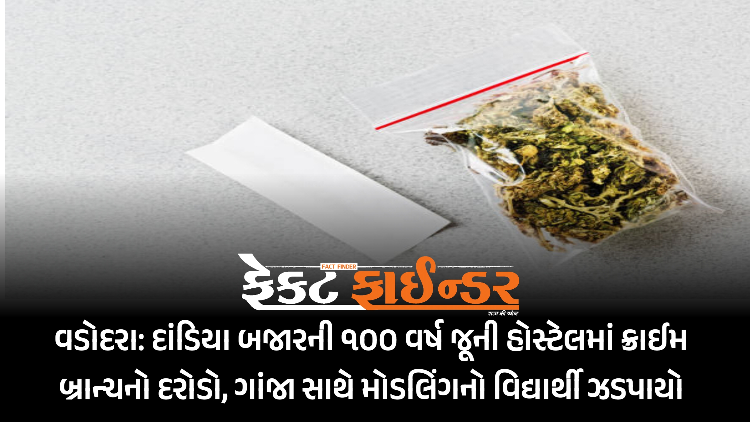 વડોદરા: દાંડિયા બજારની ૧૦૦ વર્ષ જૂની હોસ્ટેલમાં ક્રાઈમ બ્રાન્ચનો દરોડો, ગાંજા સાથે મોડલિંગનો વિદ્યાર્થી ઝડપાયો